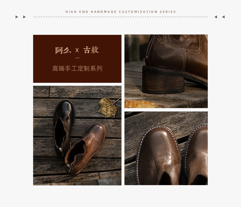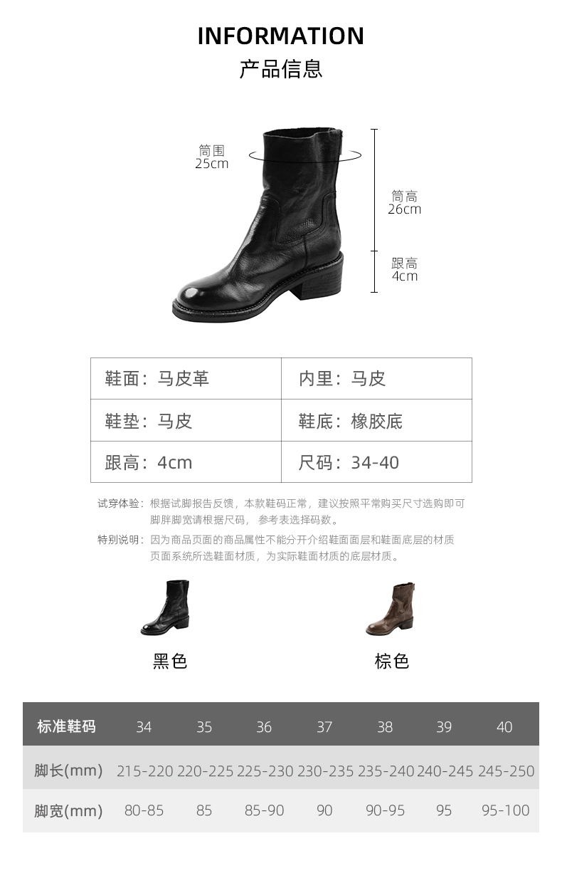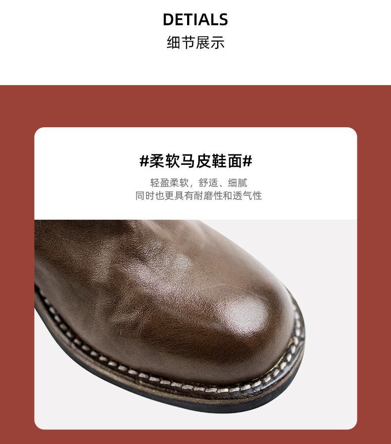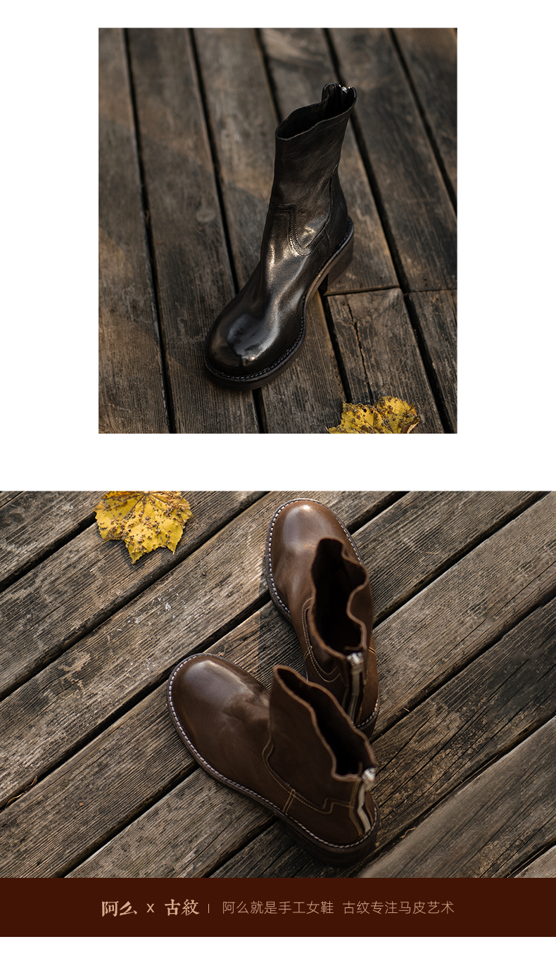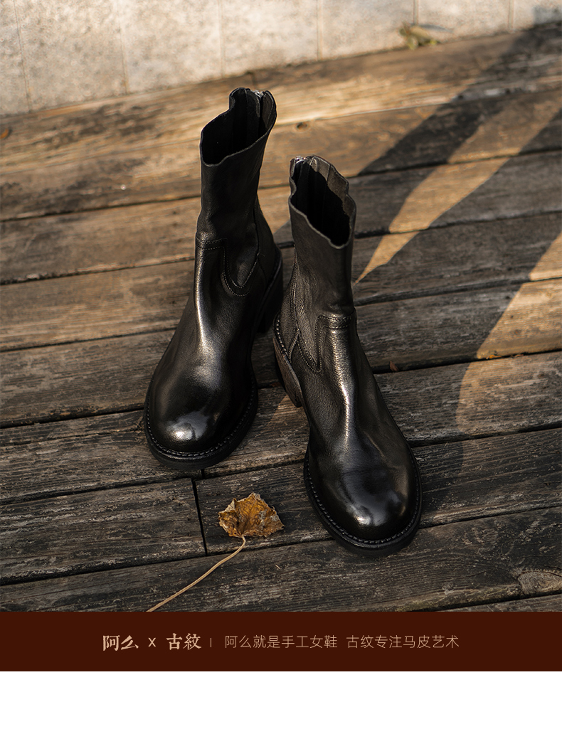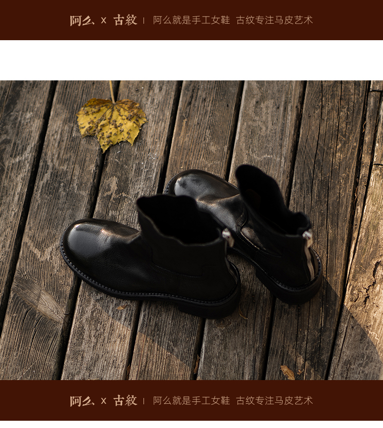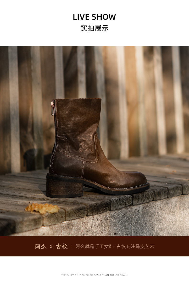【阿么古纹马皮鞋】复古显瘦粗跟短靴女秋冬新款百搭超软机车靴4CM