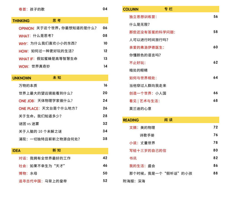 杂志专门设置思考专栏,以青少年当下最关心的问题入手,启发他们思考自己与他人,与世界的关系。