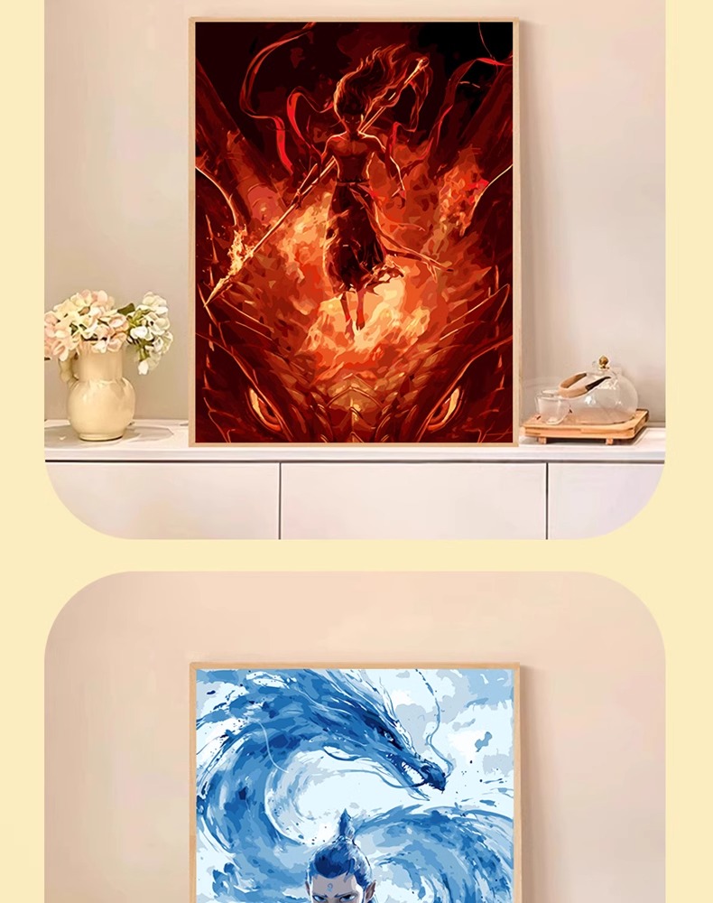 彩盒装【送实木内框+颜料+画笔】哪吒之魔童闹海数字油画DIY藕饼敖丙填充涂色挂画装饰画