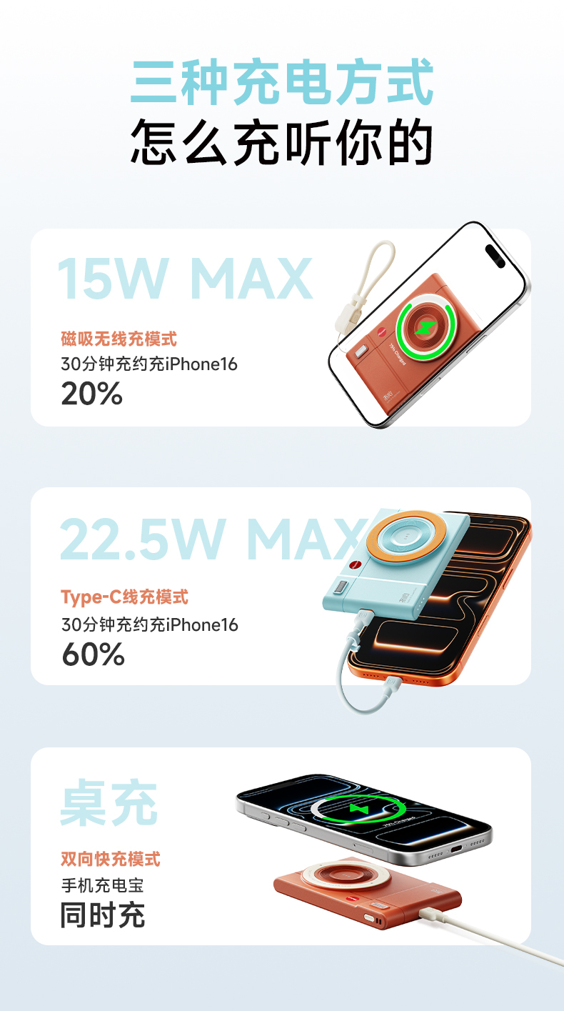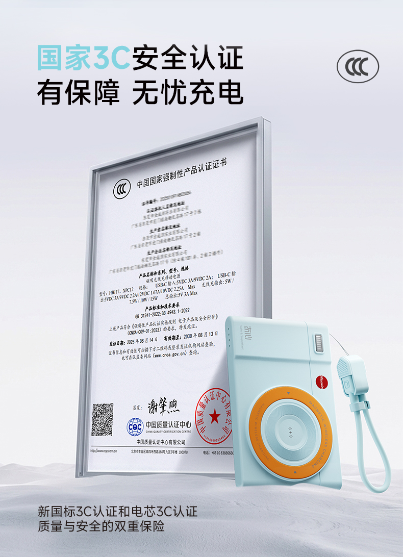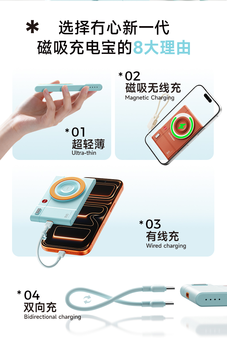 【可带上飞机高铁充电宝】冇心CCDair磁吸无线充移动电源CP037/CP038 充电线挂绳二合一 NTC智能温控 重量130g 卡片大小 9重安全保护 3C认证