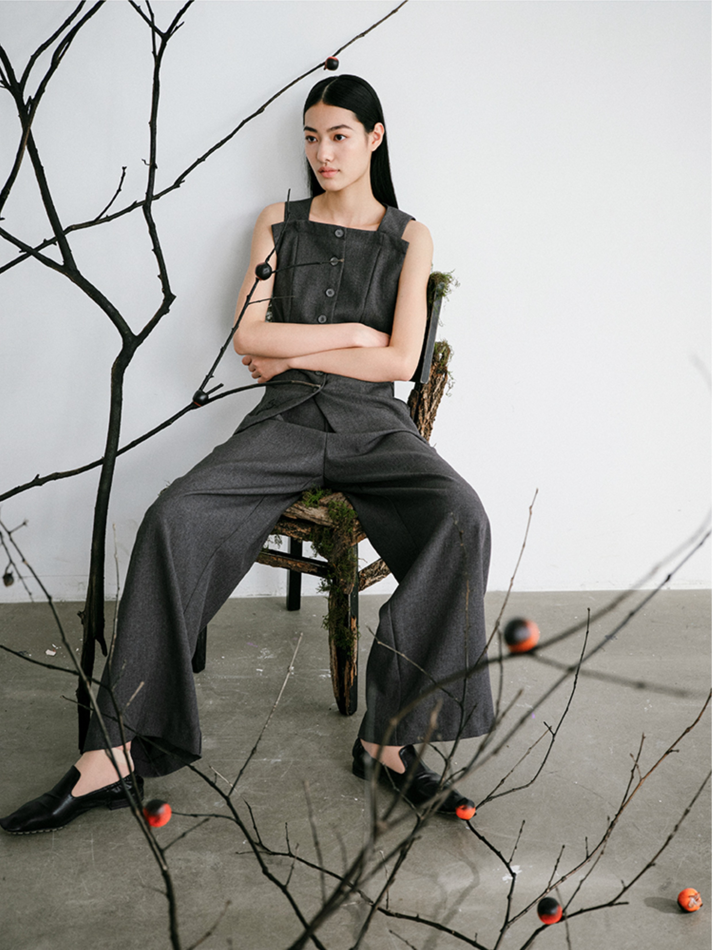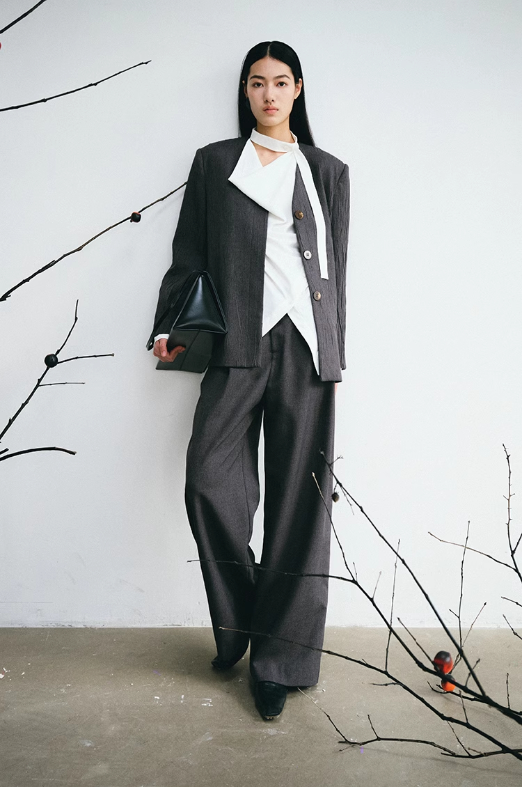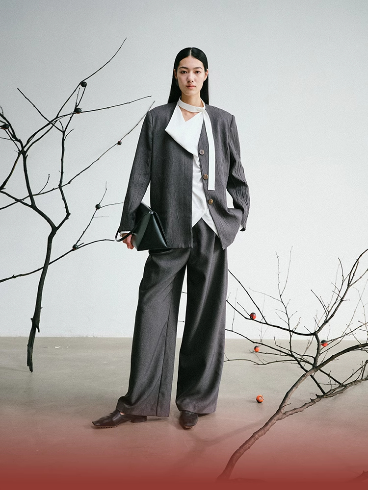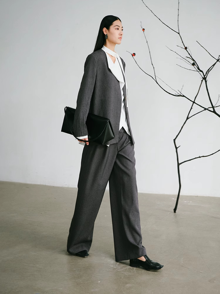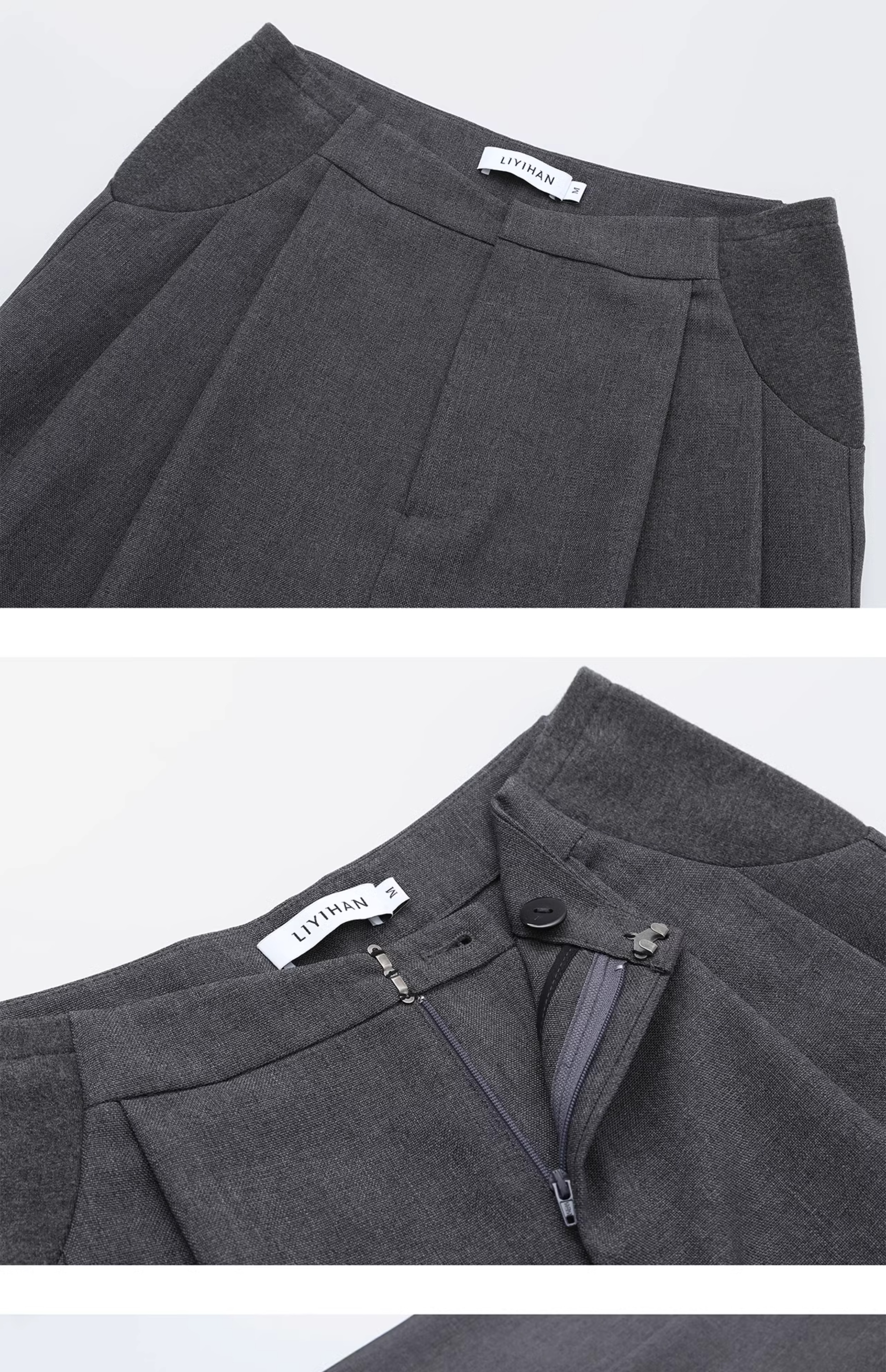 LIYIHAN 24新款螺纹腰阔腿裤设计感透气肌理西服裤子女