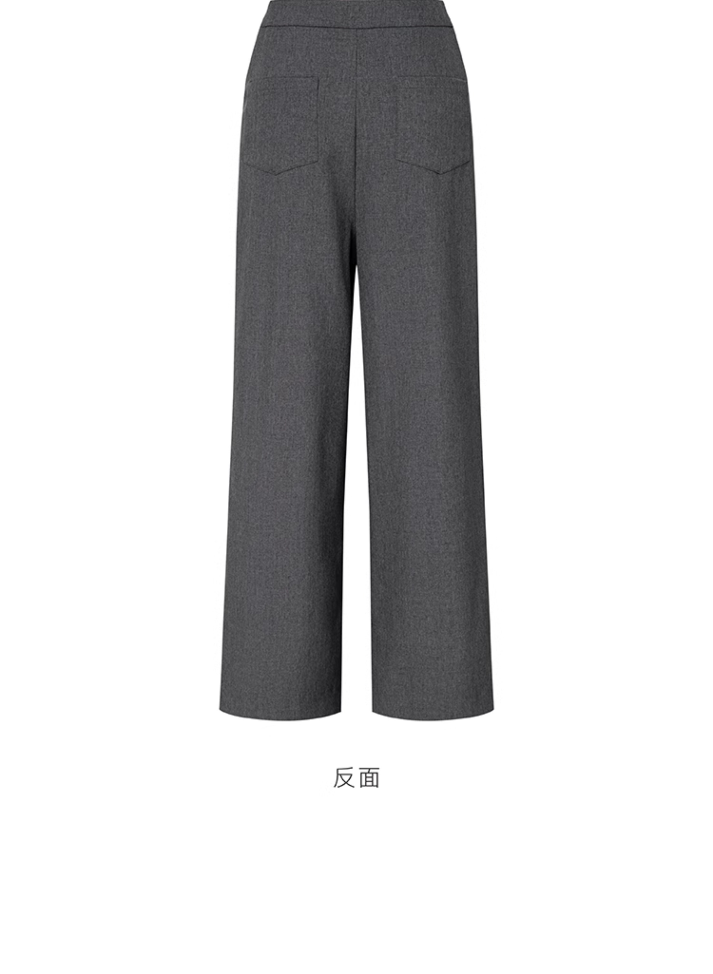 LIYIHAN羊毛拼接高腰直筒休闲裤女厚款宽松飞片阔腿黑色西裤显瘦