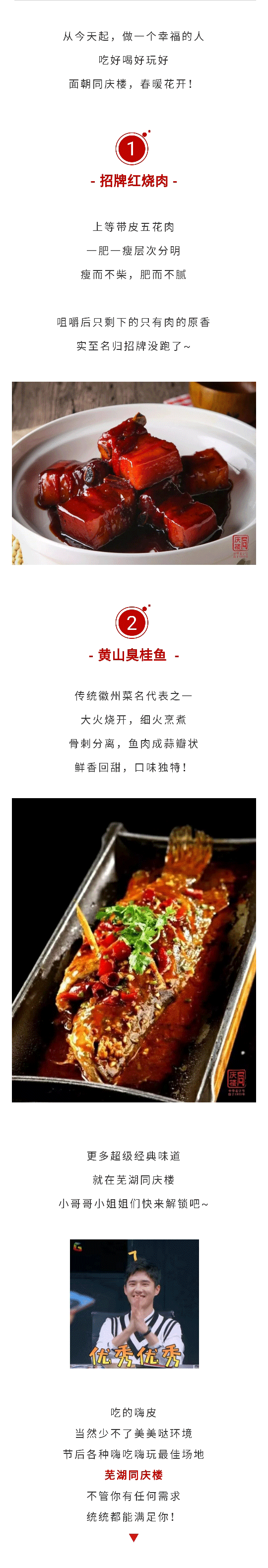 - 同庆楼品牌始创于1925年,是中华老字号,安徽和江苏两省餐饮龙头企业;是中国餐饮百强企业,荣获多项荣誉,深受各方关注和好评,赢得海内外宾客广泛赞誉