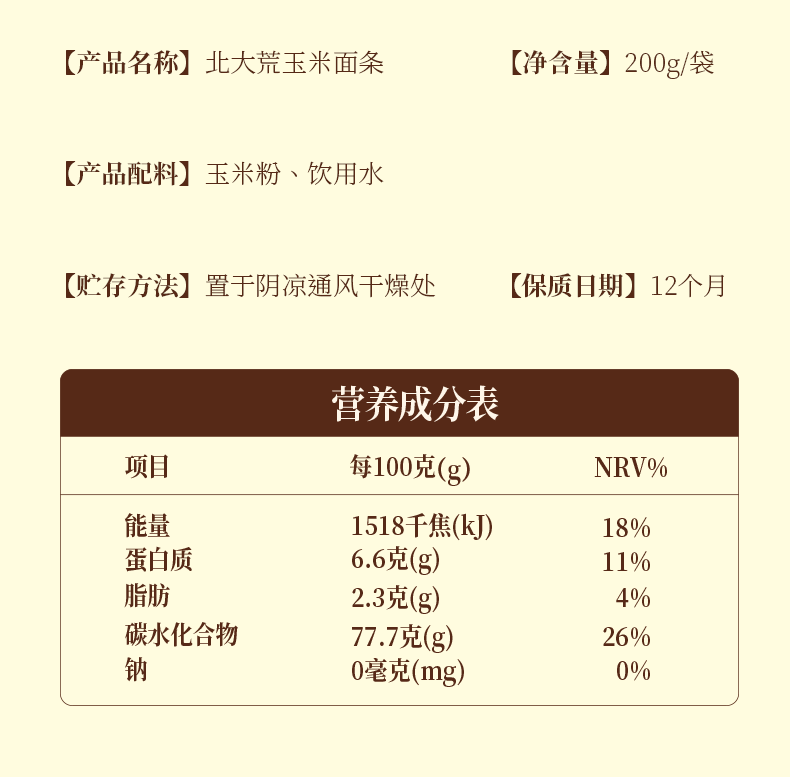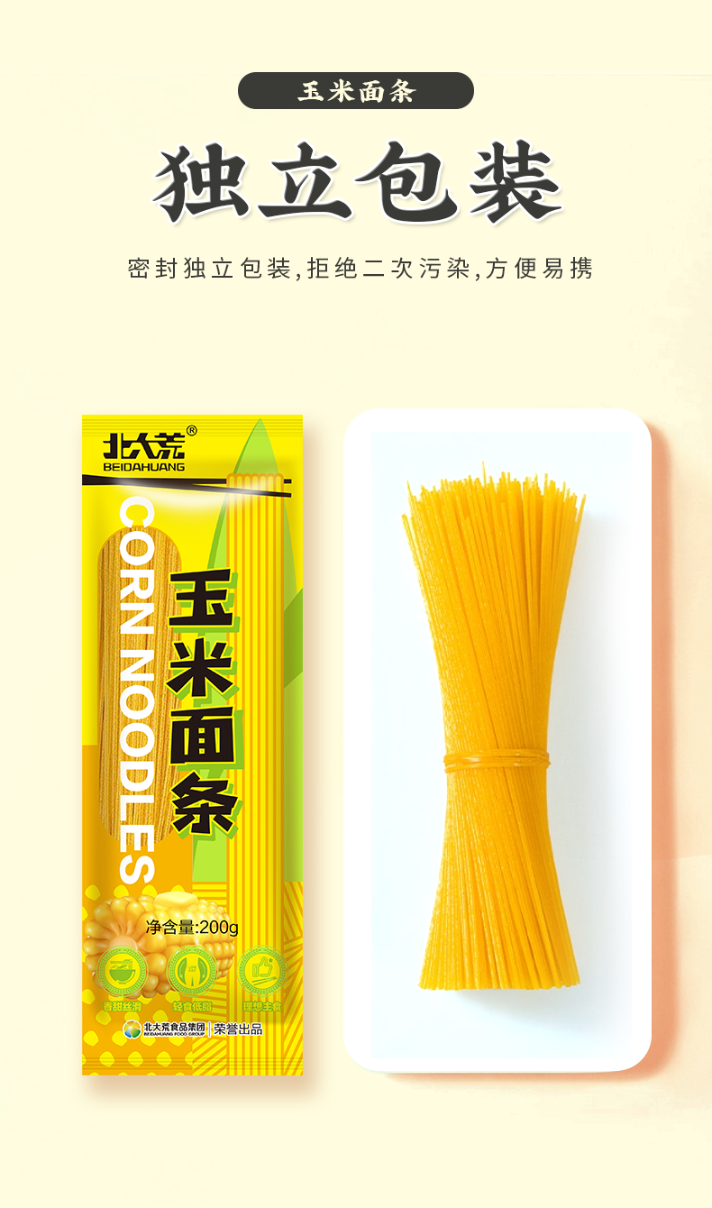 【中国农垦】北大荒玉米面条200g/袋 粗粮挂面 配料干净