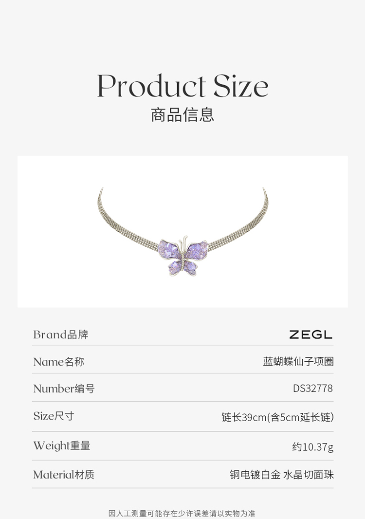 ZEGL蝴蝶项链女小众设计感2023年新款潮choker项圈锁骨颈链配饰品