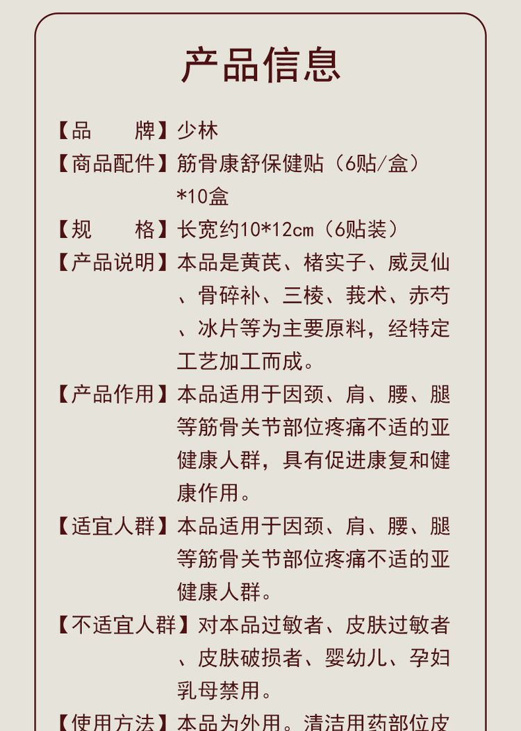 269536少林黑膏筋骨康舒保健贴