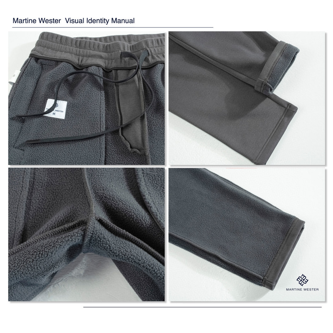 男直脚口抓绒裤;采用抓绒针织面料,柔软厚实,亲肤舒适微宽松型,合体有松量,线条简洁顺直,包容修饰腿型黑灰色和黑色S-3XL