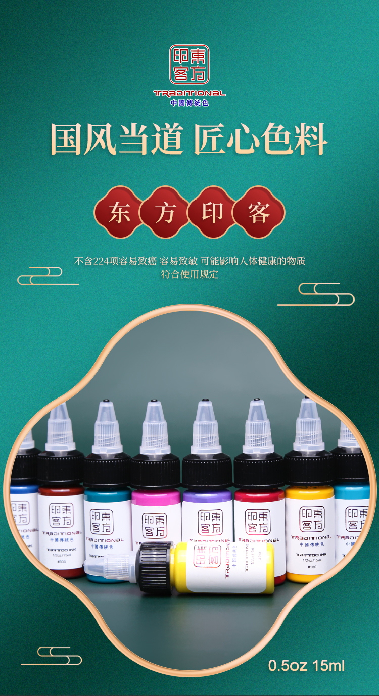 国货精品东方印客彩色纹身色料彩色传统0.5盎司惊蛰刺青器材