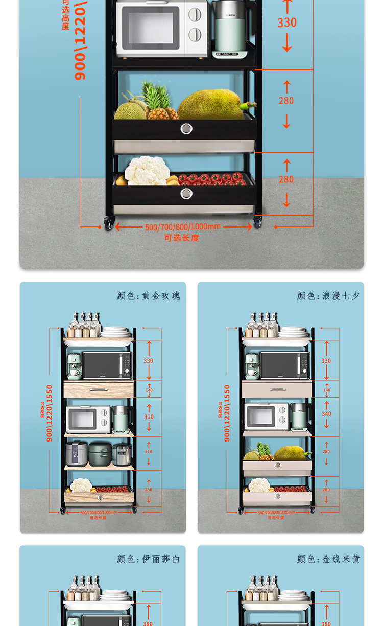 【定制商品 下单7天内送货上门】四层单抽屉带单拉篮1220*800*350-置物架