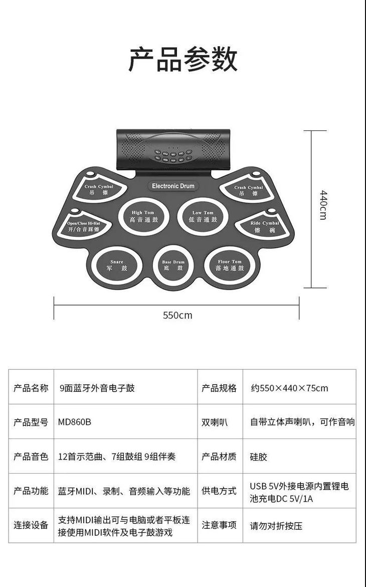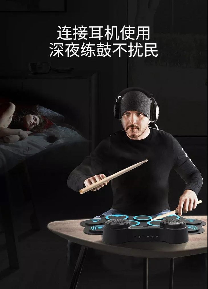 手卷电子鼓便携式充电架子鼓折叠架子鼓9面电子鼓专业演奏 YW11不可接电脑版9面鼓