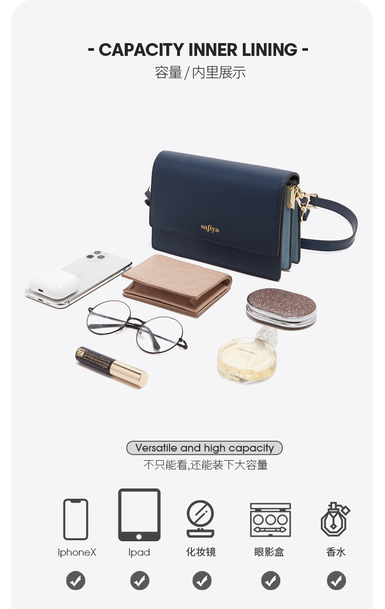 Safiya/索菲娅牛皮2022新款小方包单肩包包女式斜挎包女包SF997011Y