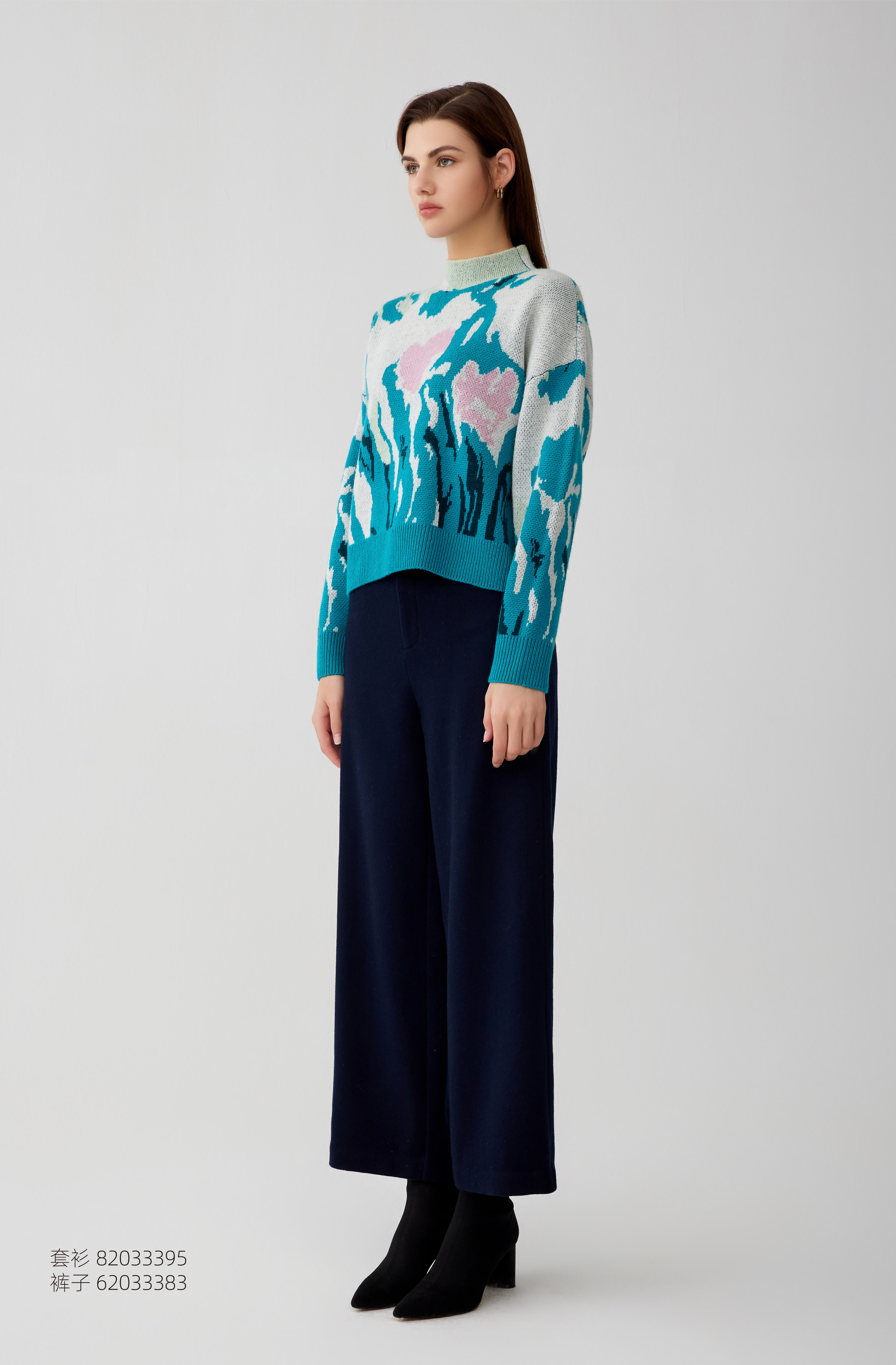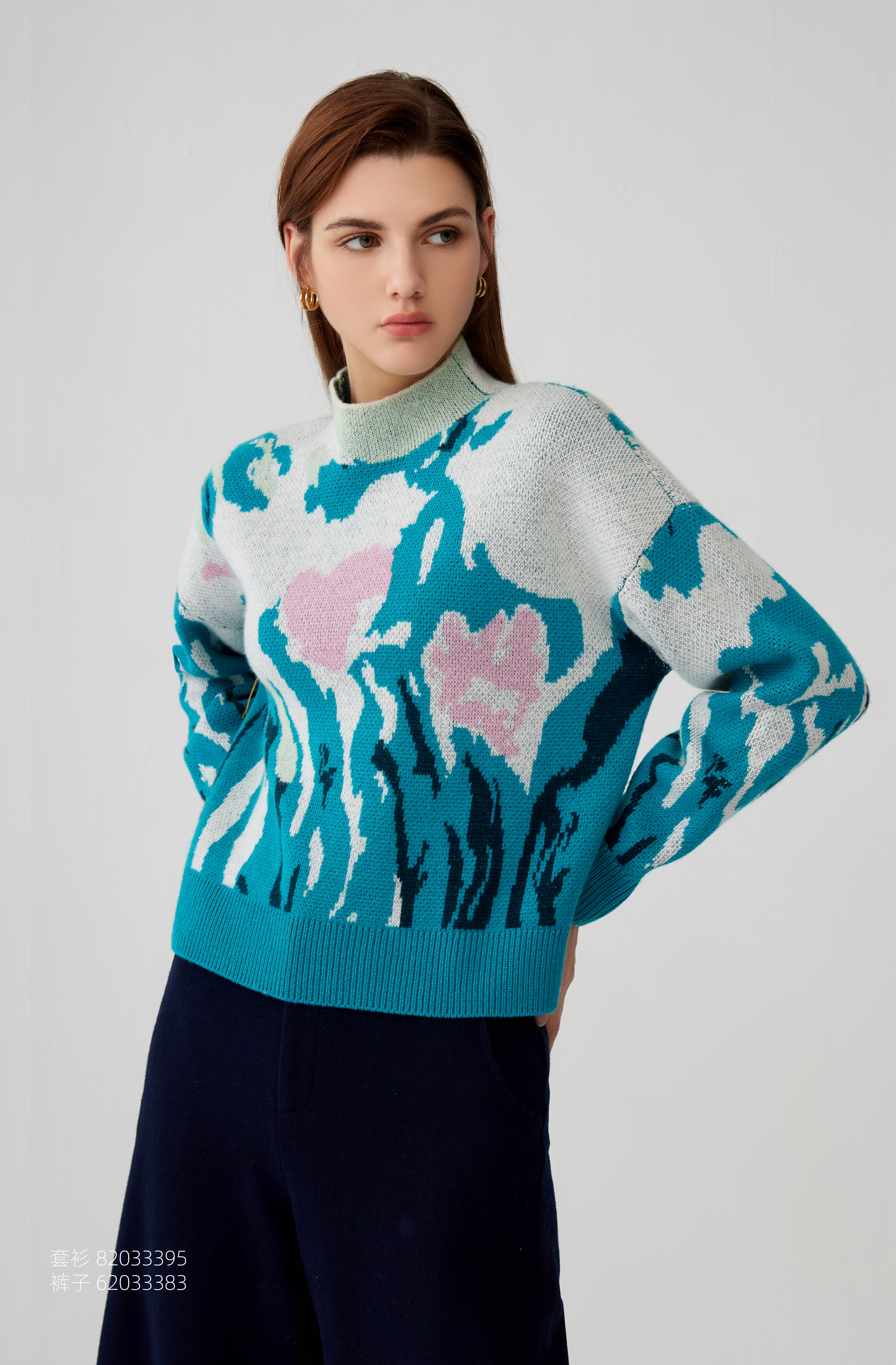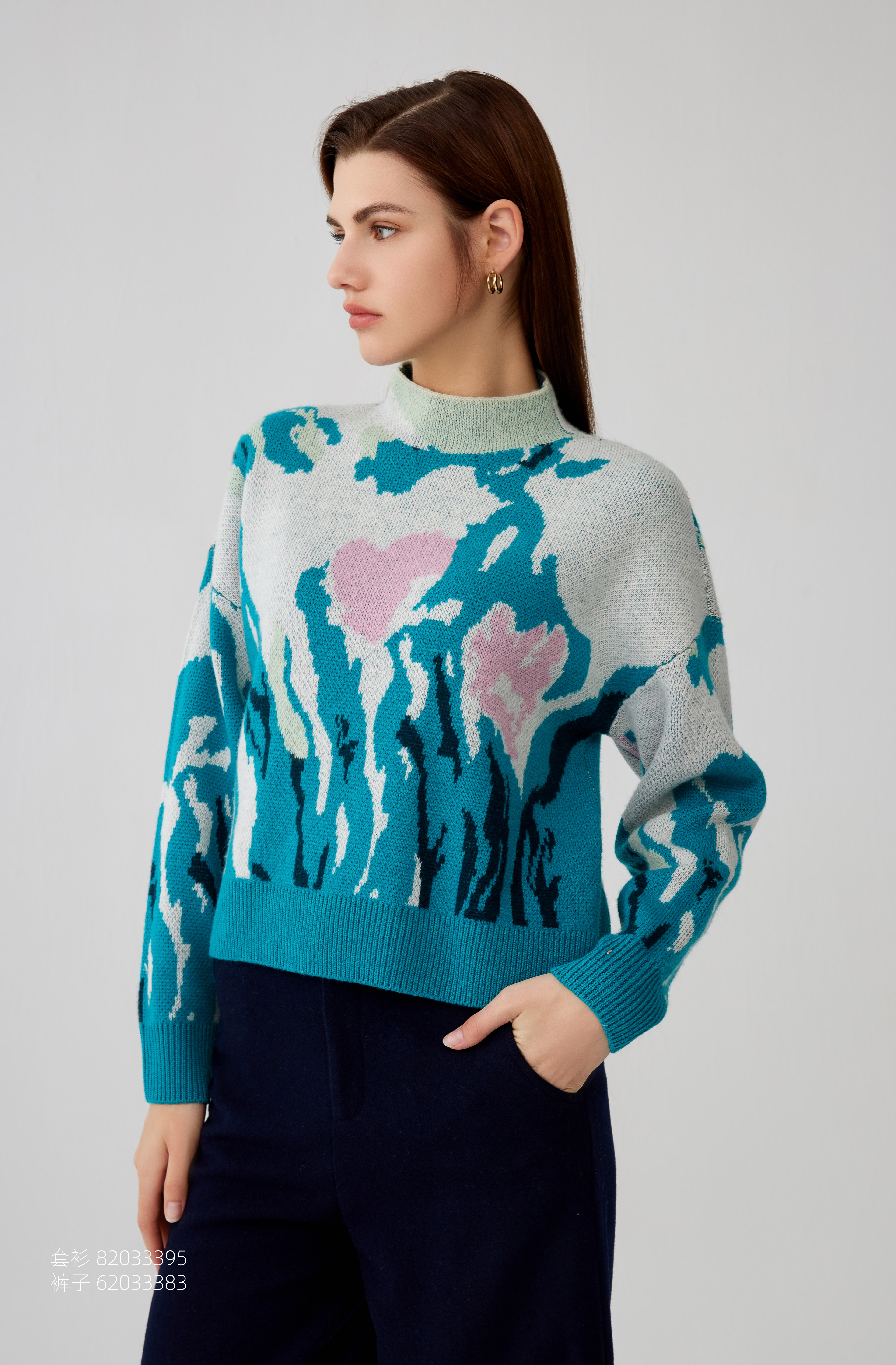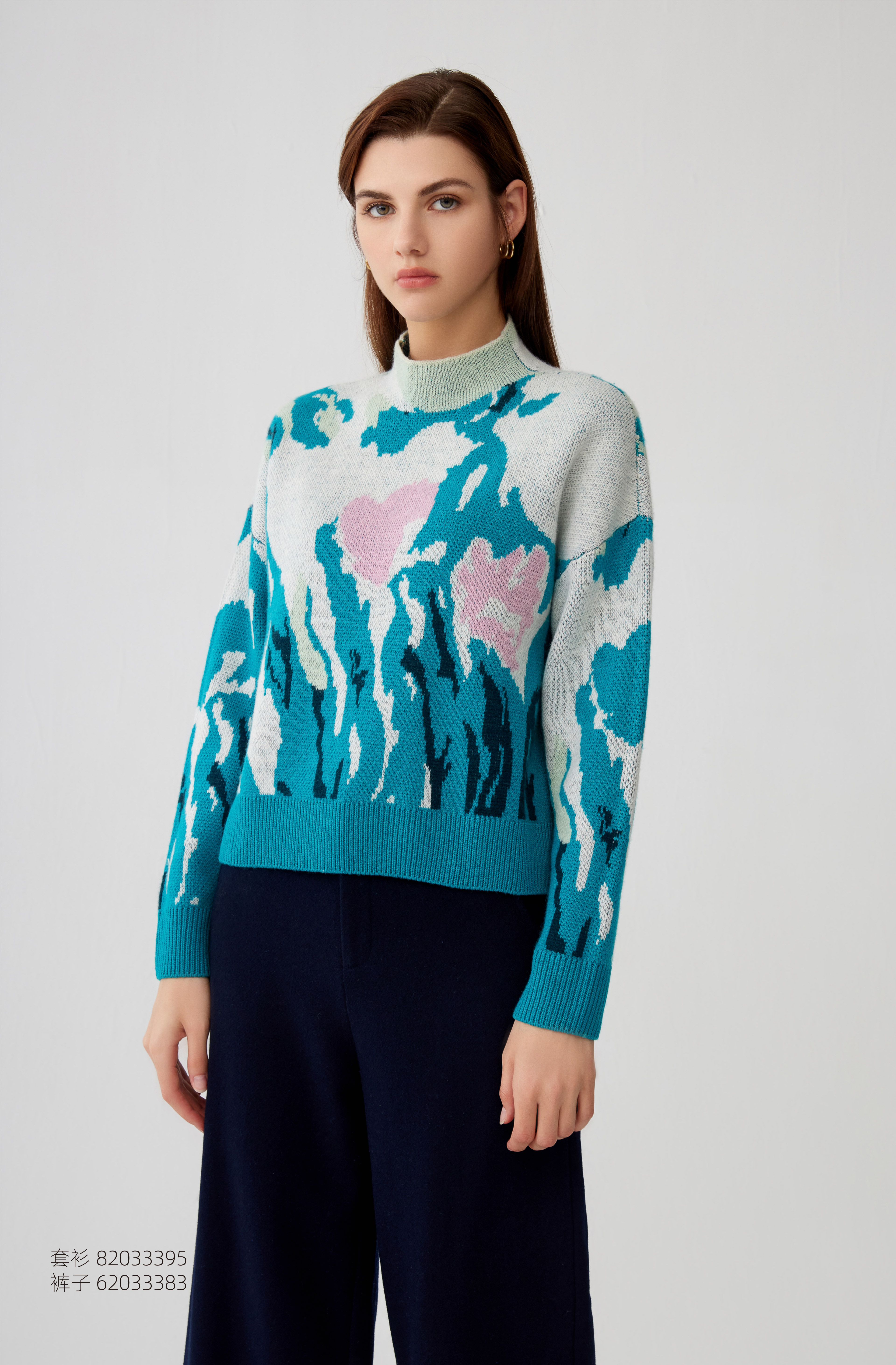 【半高领高织花色套衫】羊绒世家秋冬新品女士新品100%山羊绒内搭保暖毛衣