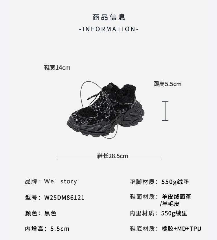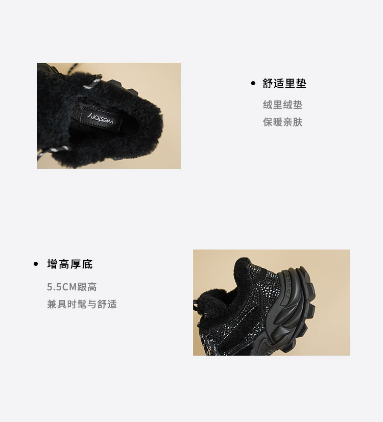 Westory2025年冬季厚底加毛撞色甜酷运动鞋深口毛毛鞋W25DM86121