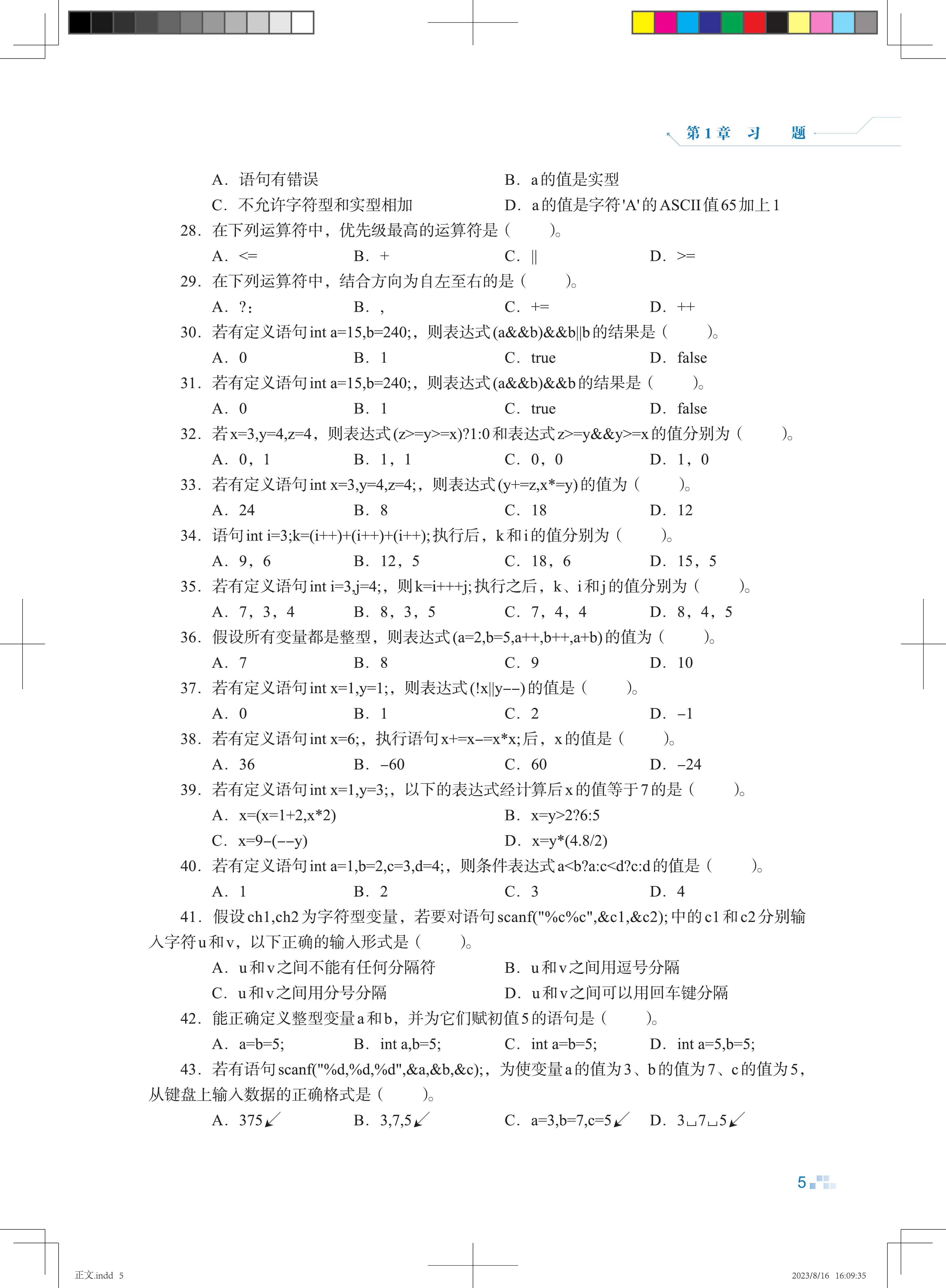 30347-1 C语言程序设计习题集与上机指导(第五版)