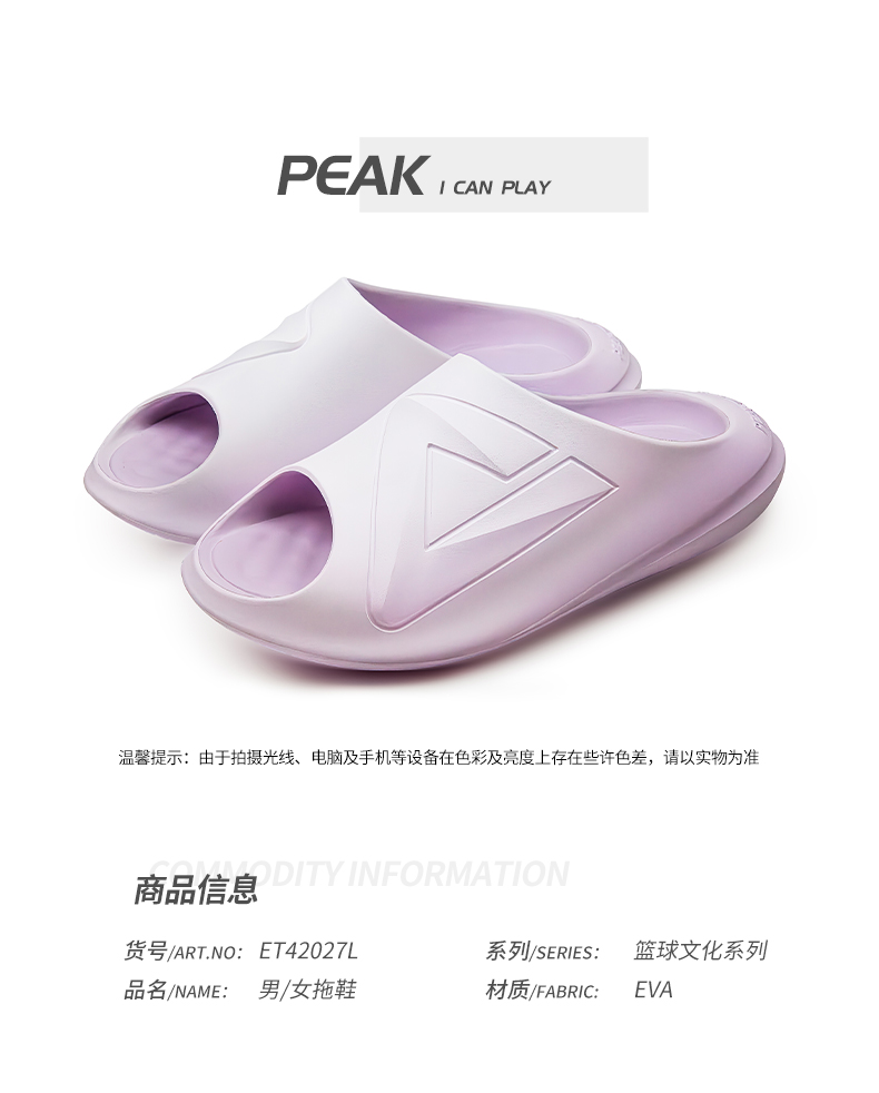 匹克【篮球文化】态极小胖拖男女24夏季新款舒适防滑运动拖鞋ET42027L/ET42028L
