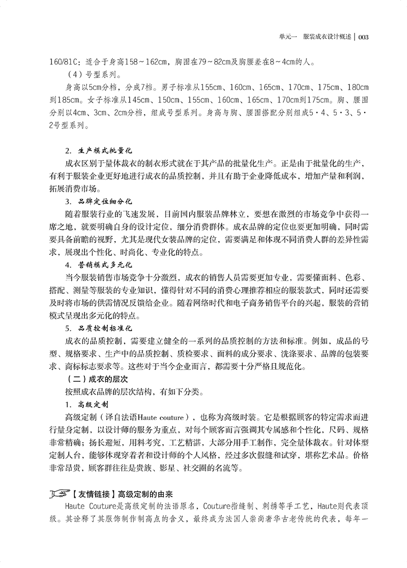 《服装成衣设计》是“十三五”中等职业教育部委级规划教材。书中系统地介绍了服装成衣设计的全部内容以及实际操作的每一个环节,包括:成衣设计的程序、设计基础、流行趋势、设计要素、设计手法、分类设计等多项工作任务,与服装成衣设计就业岗位情境一致,承载教学服务于服装行业与生产实践的目的。全书在对服装成衣设计理论进行详尽介绍的同时,注重实操性,引入了大量的校企合作实操案例为设计依据,做到理论与实践相结合。