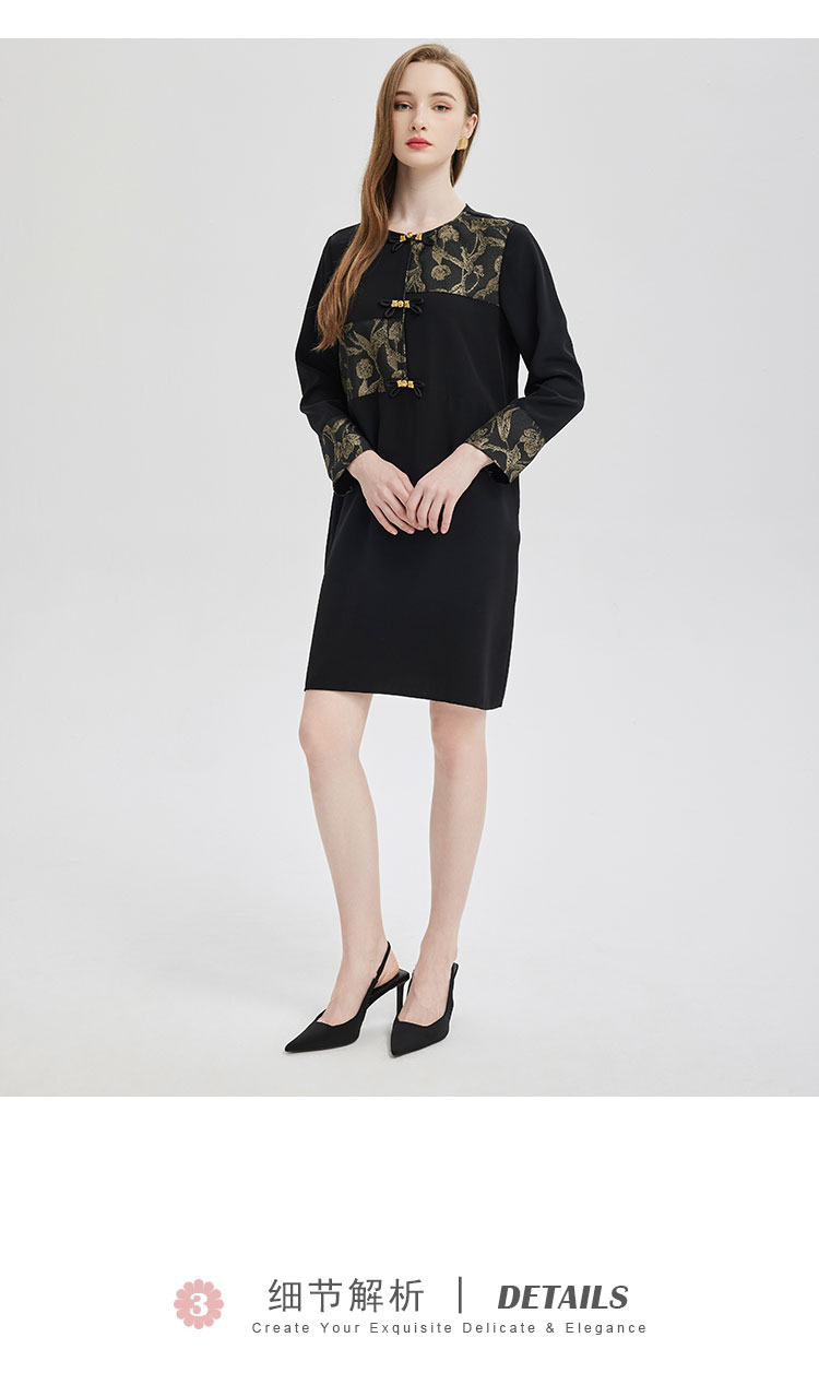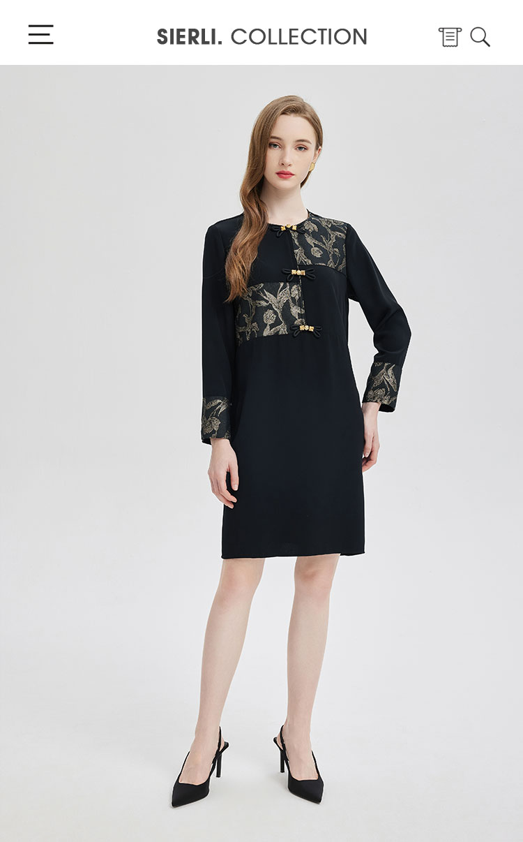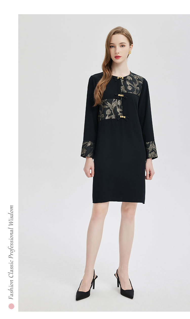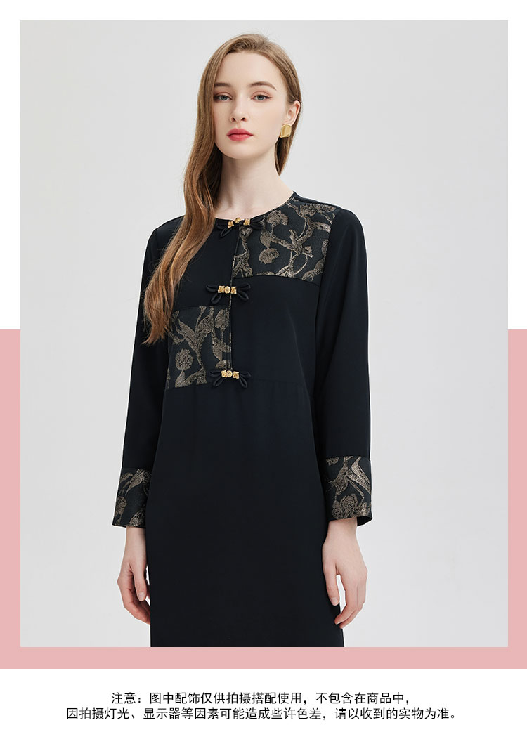 PE836斯尔丽2024新款提花拼接式国风不对称宽松连衣裙
