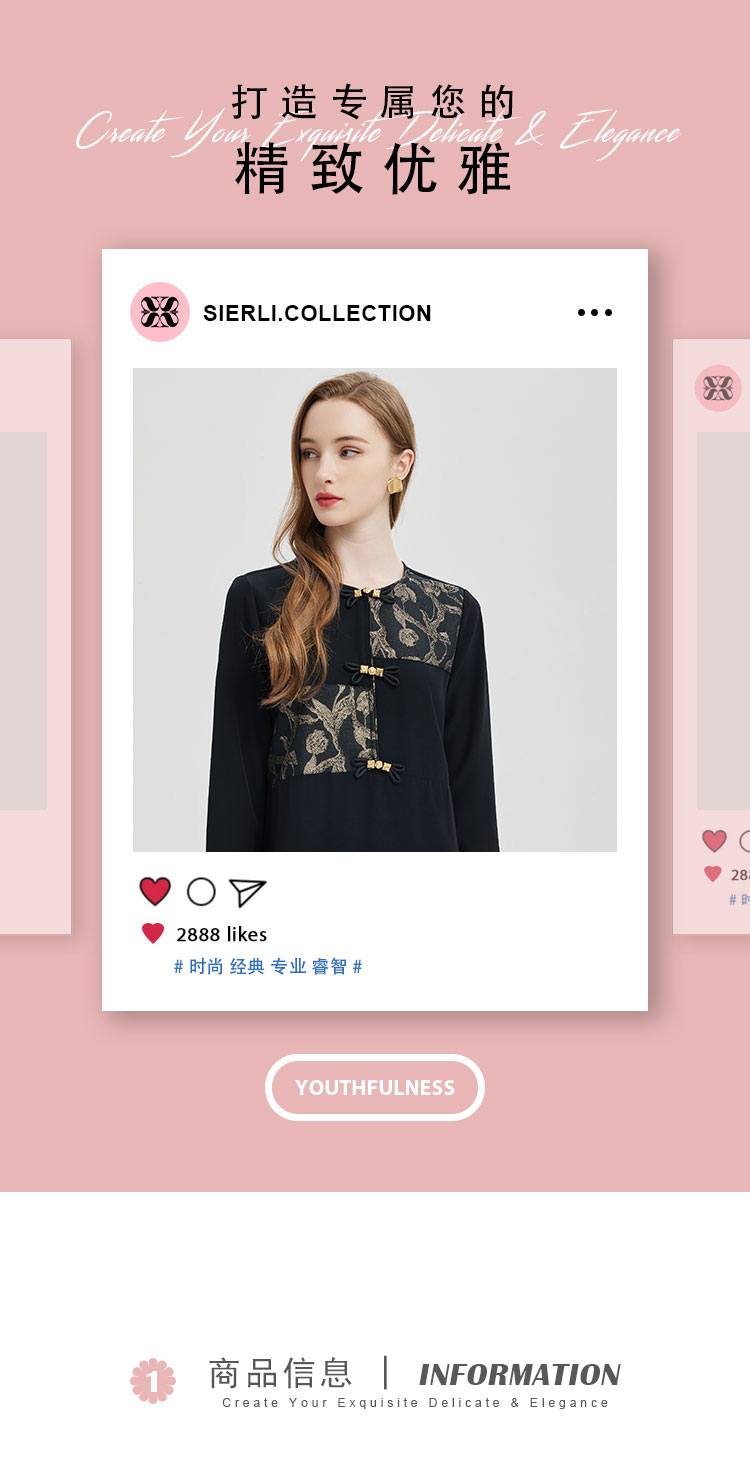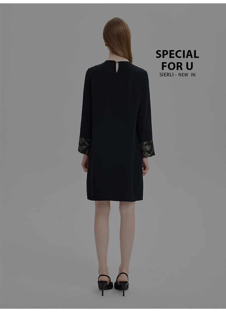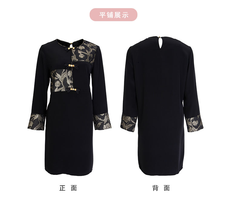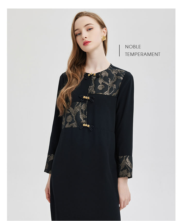 PE836斯尔丽2024新款提花拼接式国风不对称宽松连衣裙