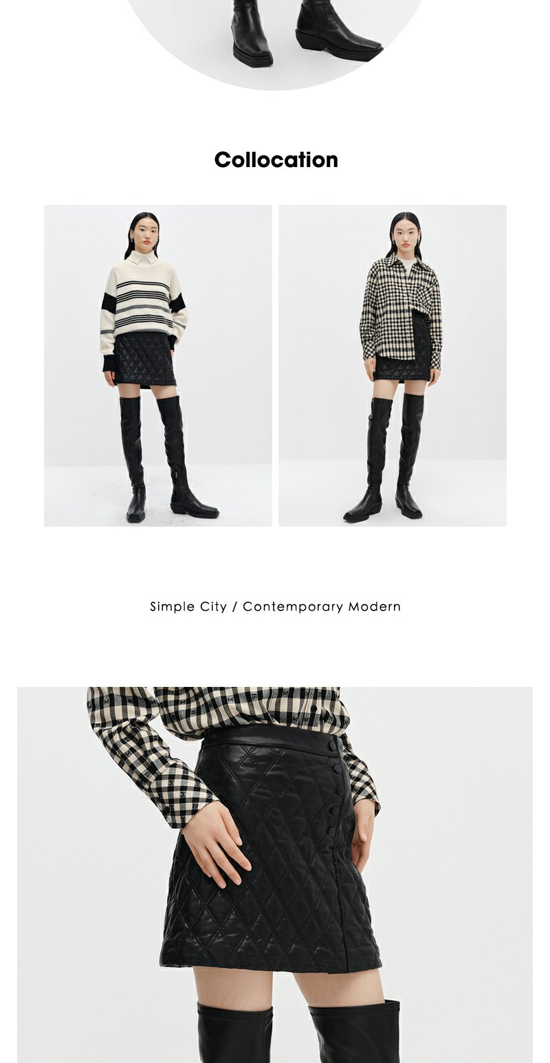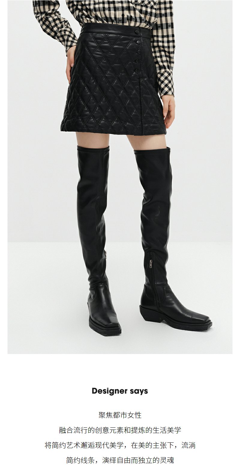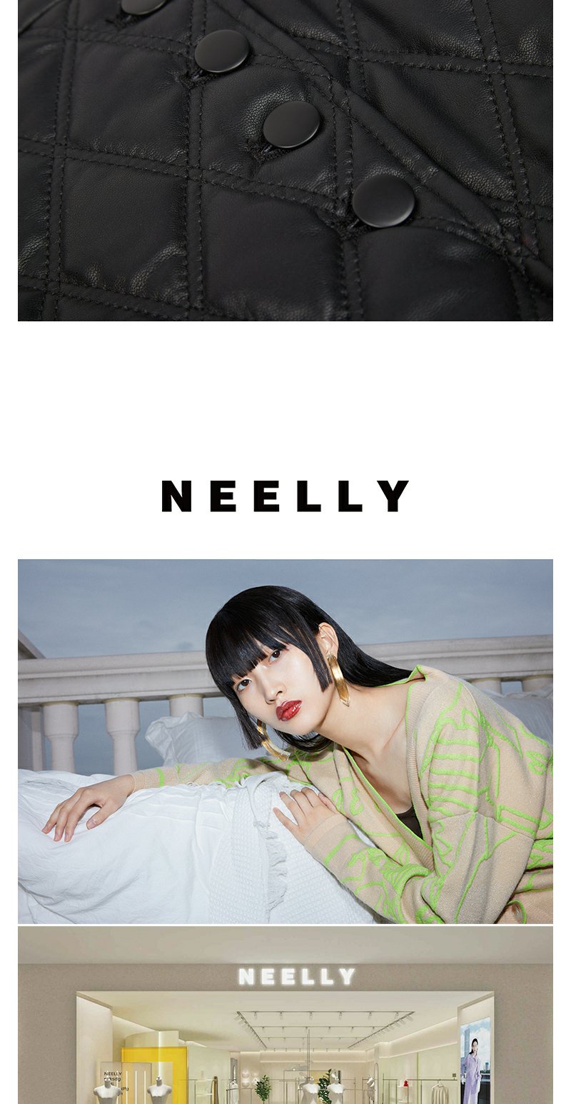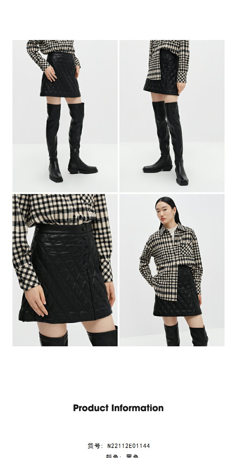 NEELLY纳俪商场同款冬季高腰半身裙女百搭显瘦短皮裙A字裙时尚N22112E01144