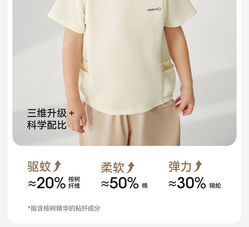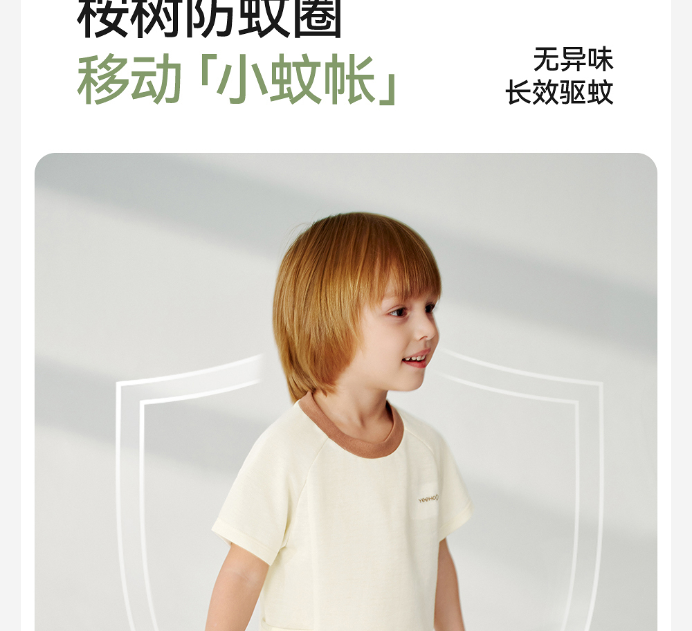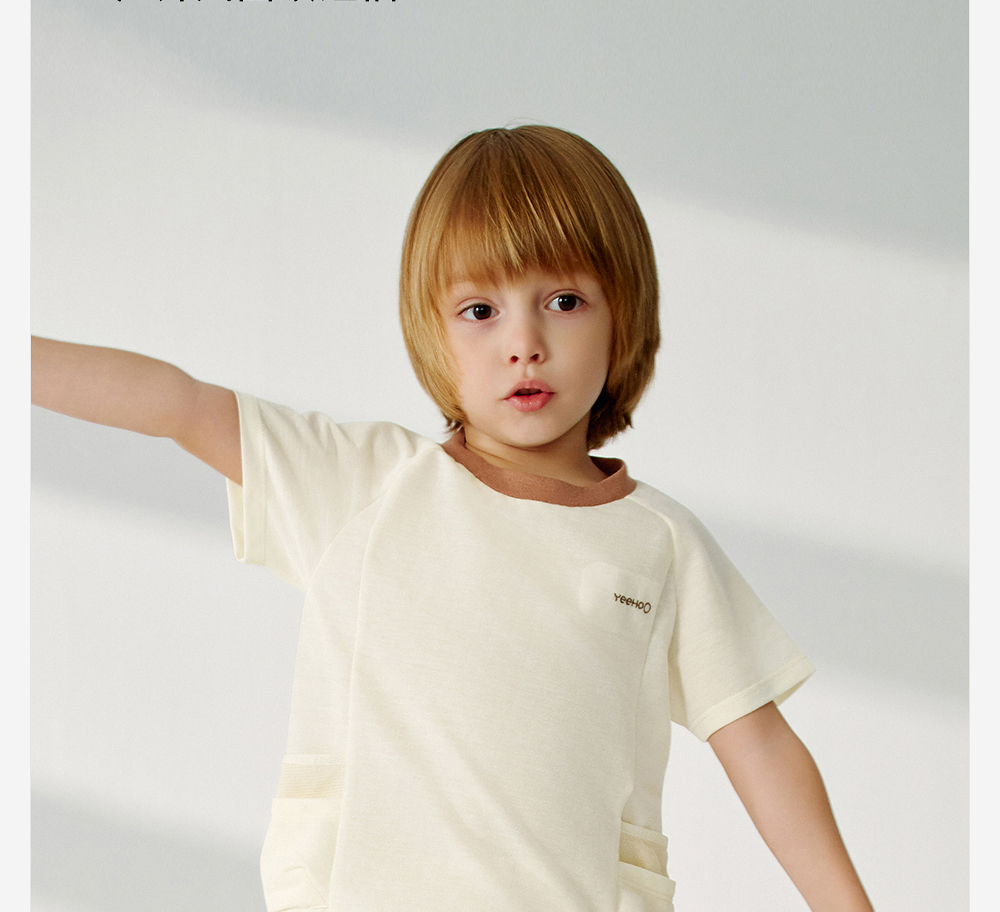 英氏儿童T恤夏季短袖透气男童防蚊T恤上衣2025新款YRTCJ2R017A