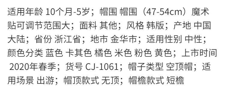 儿童帽子帽夏宝宝可爱眼睛遮阳帽婴儿帽子空顶草帽卡通百搭太阳帽