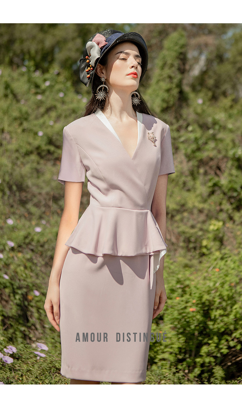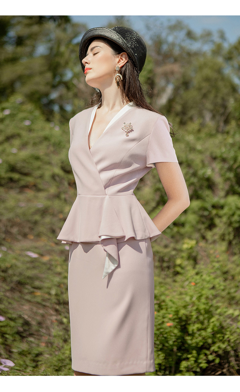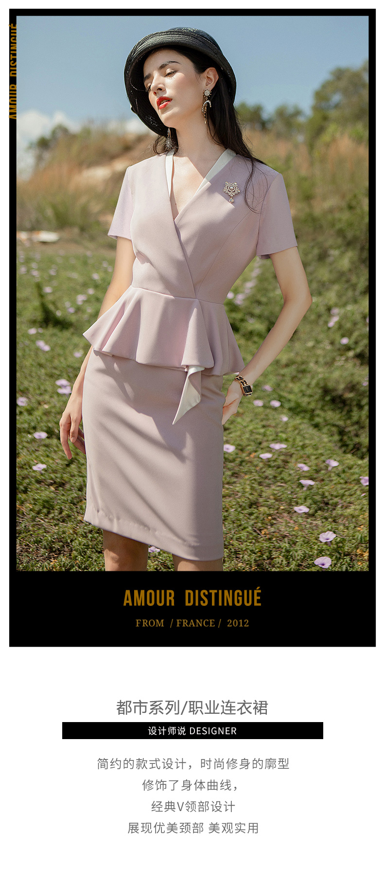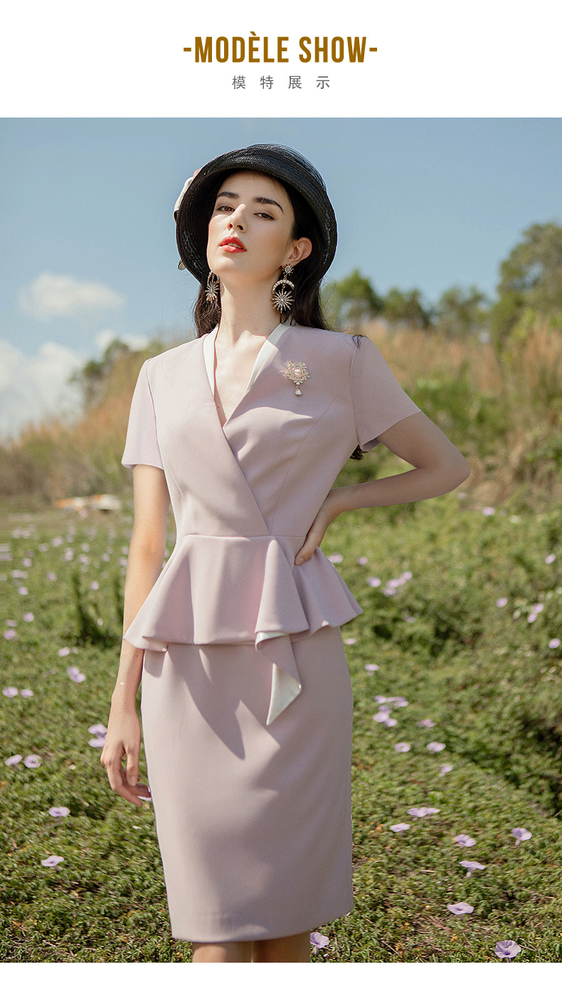 IWY/粉色都市时尚设计感职业女士西装连衣裙白领工作服上班职业装Q718