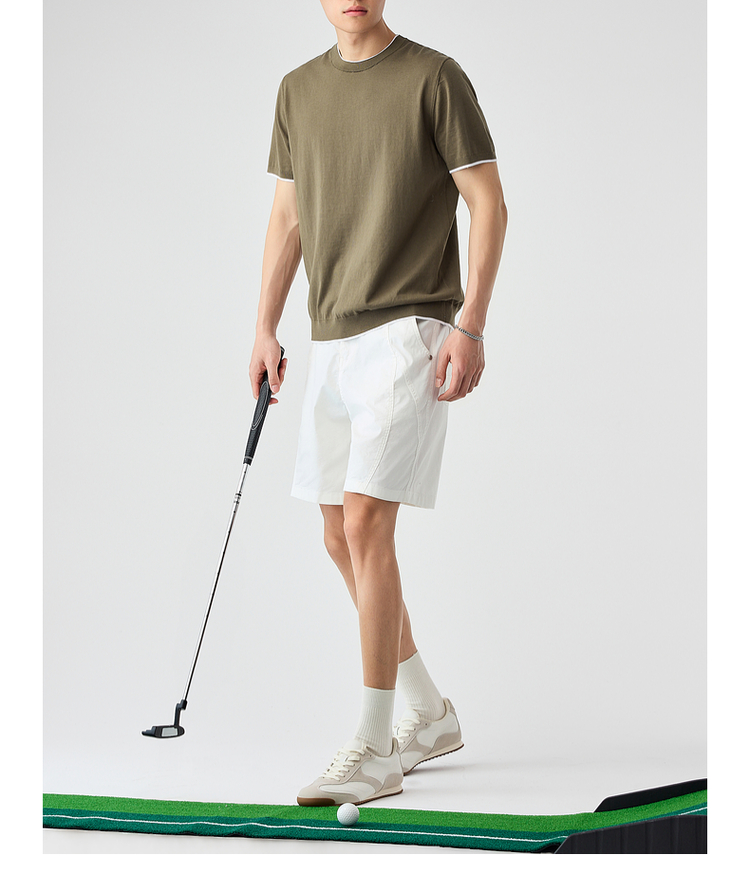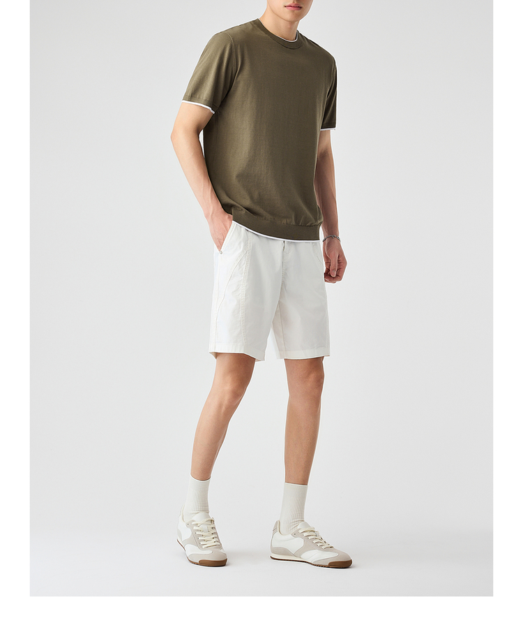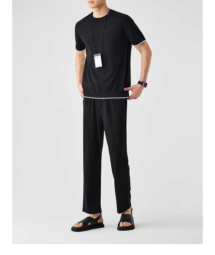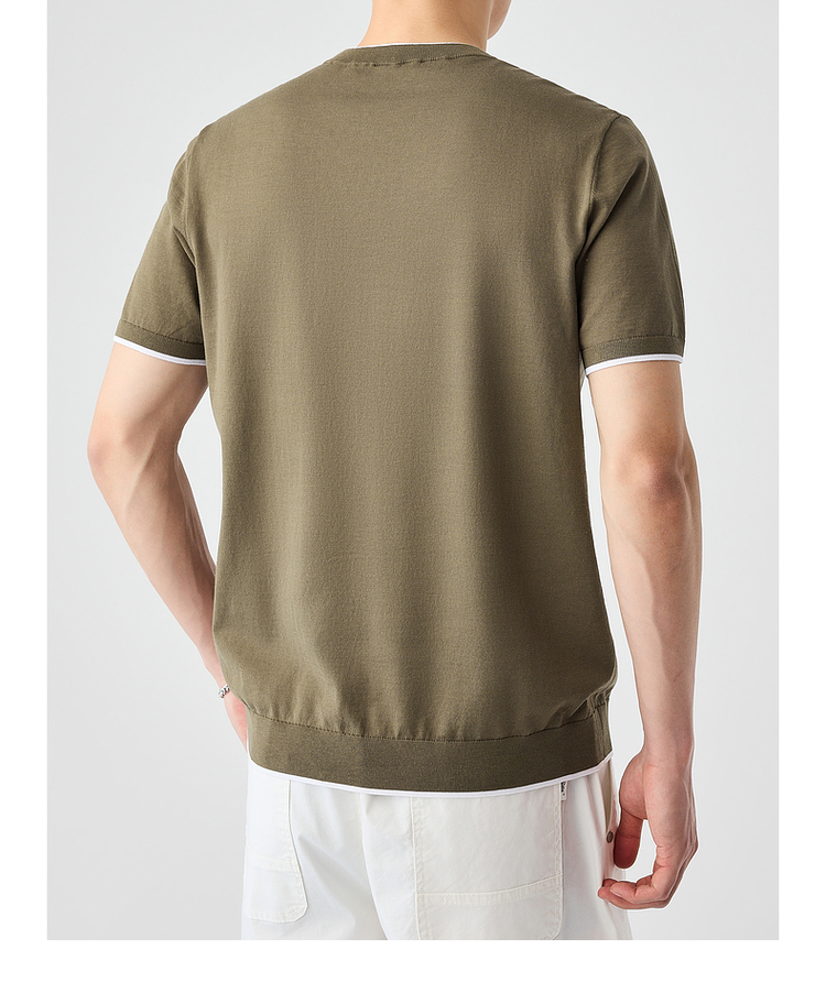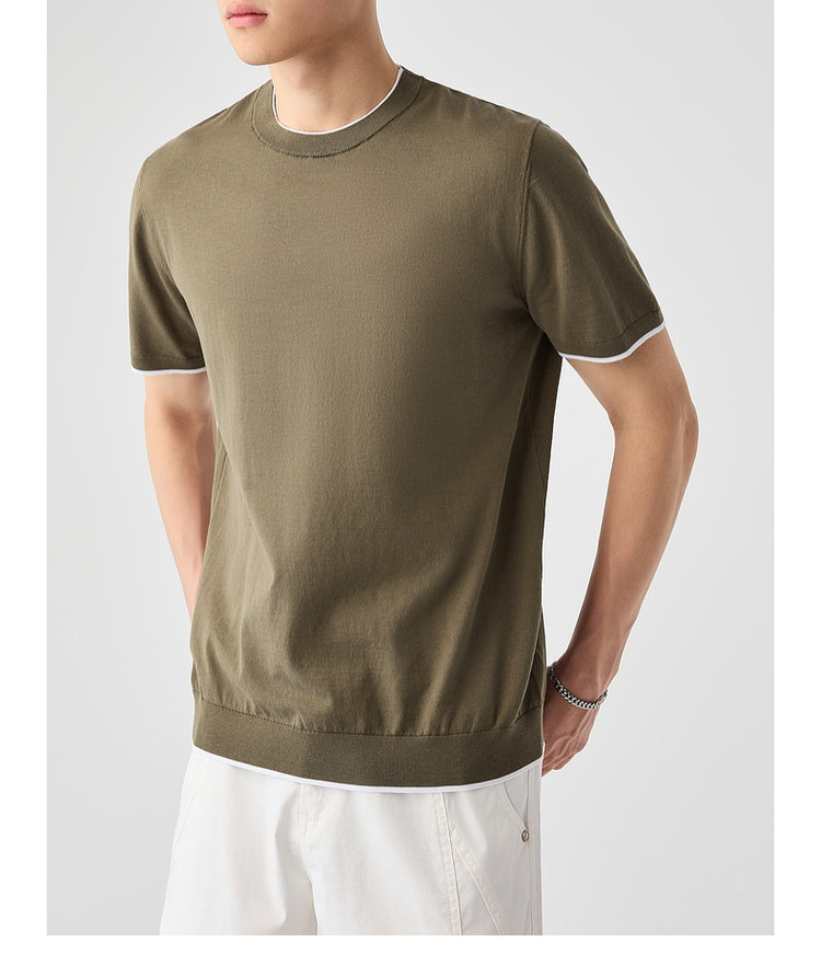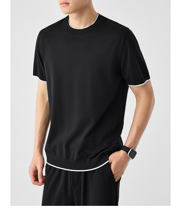 墨麦客双层撞色领假两件针织短袖T恤男2025年夏季直筒基础上衣男