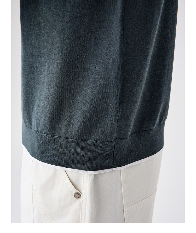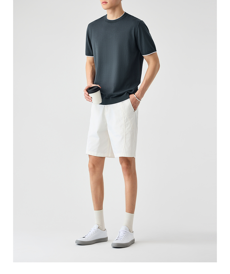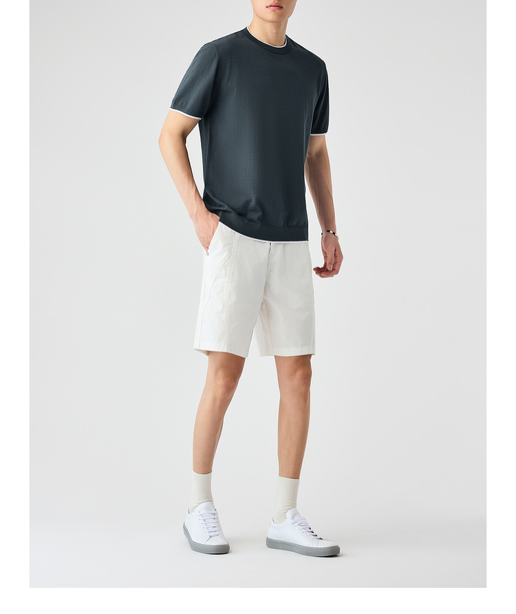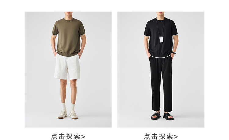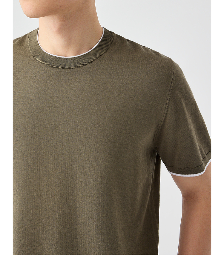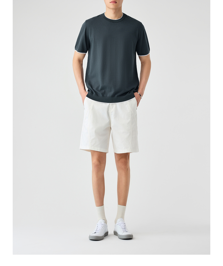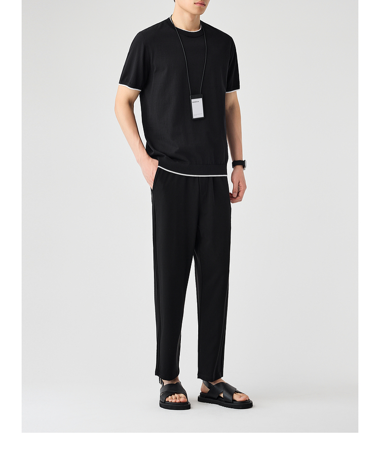 墨麦客双层撞色领假两件针织短袖T恤男2025年夏季直筒基础上衣男