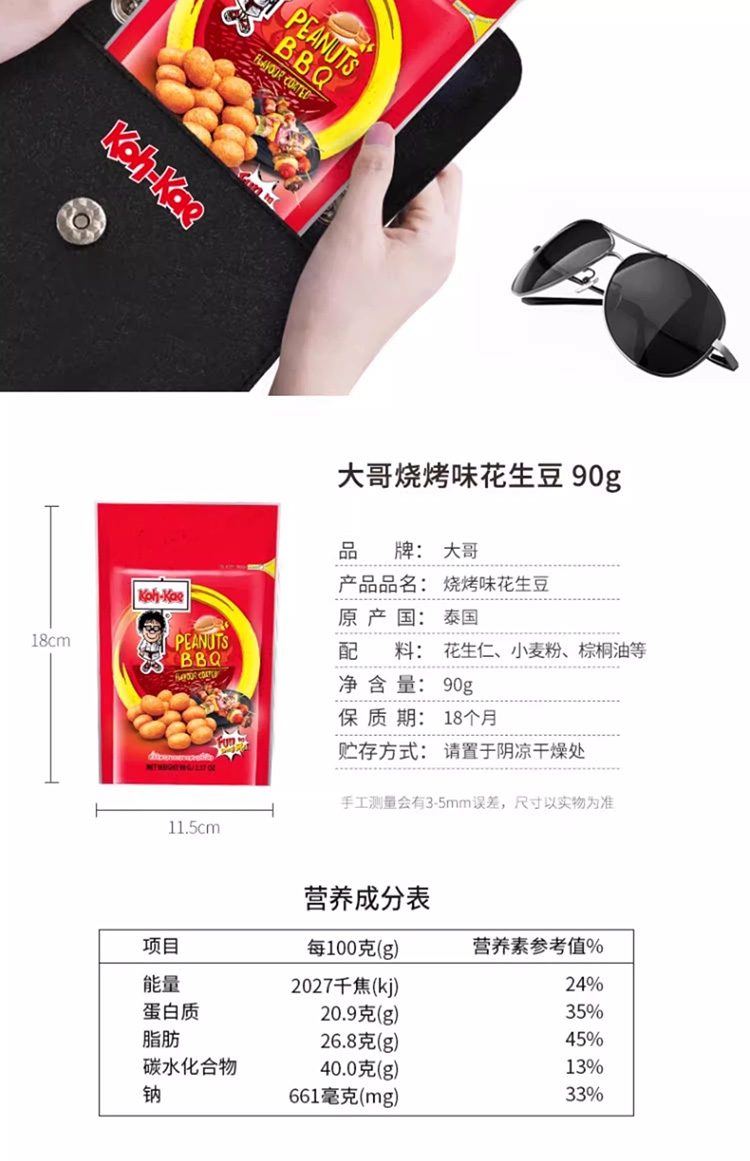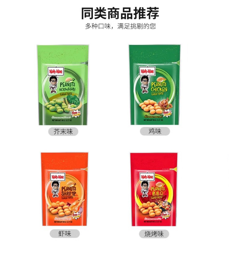大哥鸡味/芥末味/烧烤味/虾味花生豆90g 大粒饱满便携袋装 059471/059694/059695/059470
