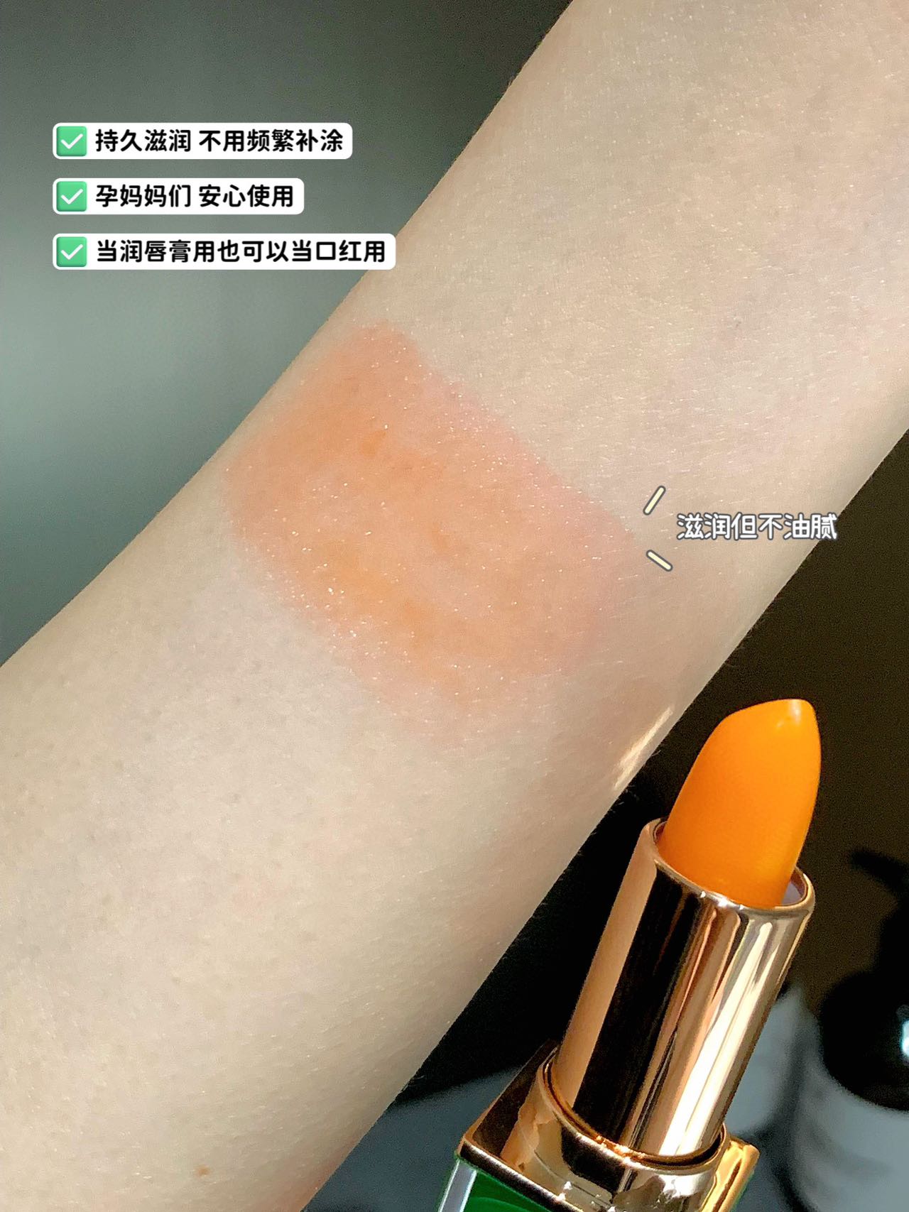 平时在吃东西时,总要习惯性的先擦掉口红再吃饭,就算这样还是比较担心不小心吃到肚子里,但这款润唇膏通过了安全检查。