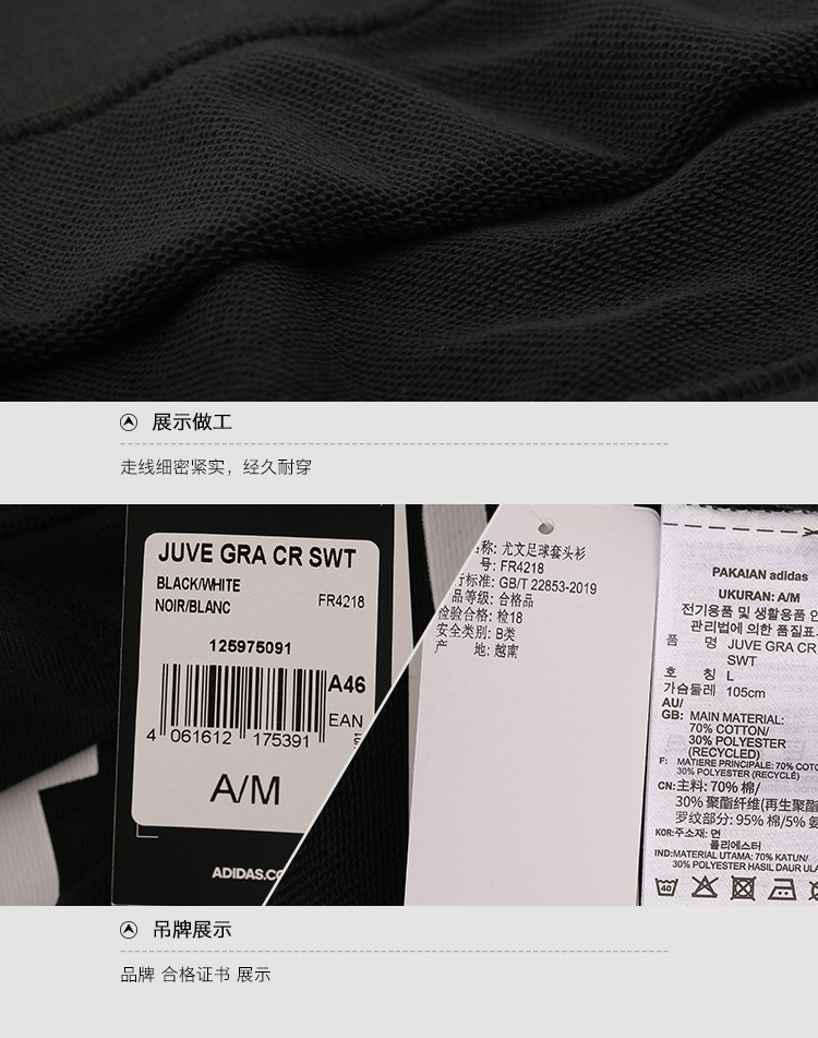 ADIDAS/阿迪达斯 尤文图斯20/21赛季足球卫衣套头衫FR4218