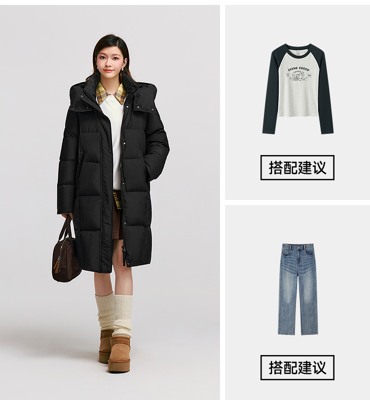 【爆品主推】轻松|森马羽绒服女冬季长款90绒子防泼水可拆卸帽面包服保暖外套