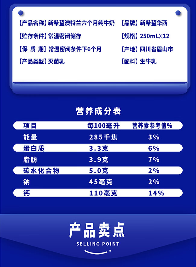 新希望澳特兰六个月牛奶整件250ml*12