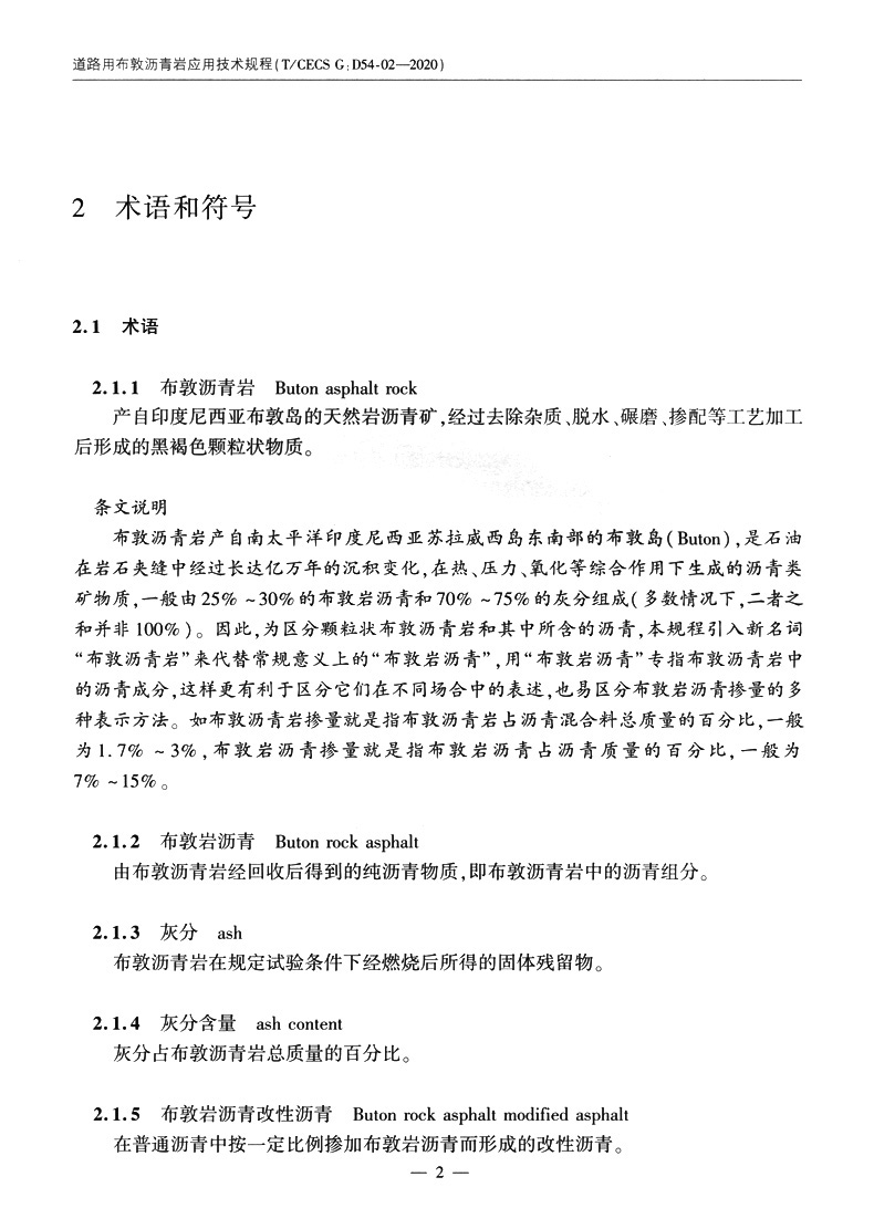 道路用布敦沥青岩应用技术规程(T/CECS G:D54-02—2020)