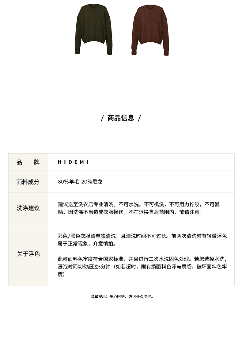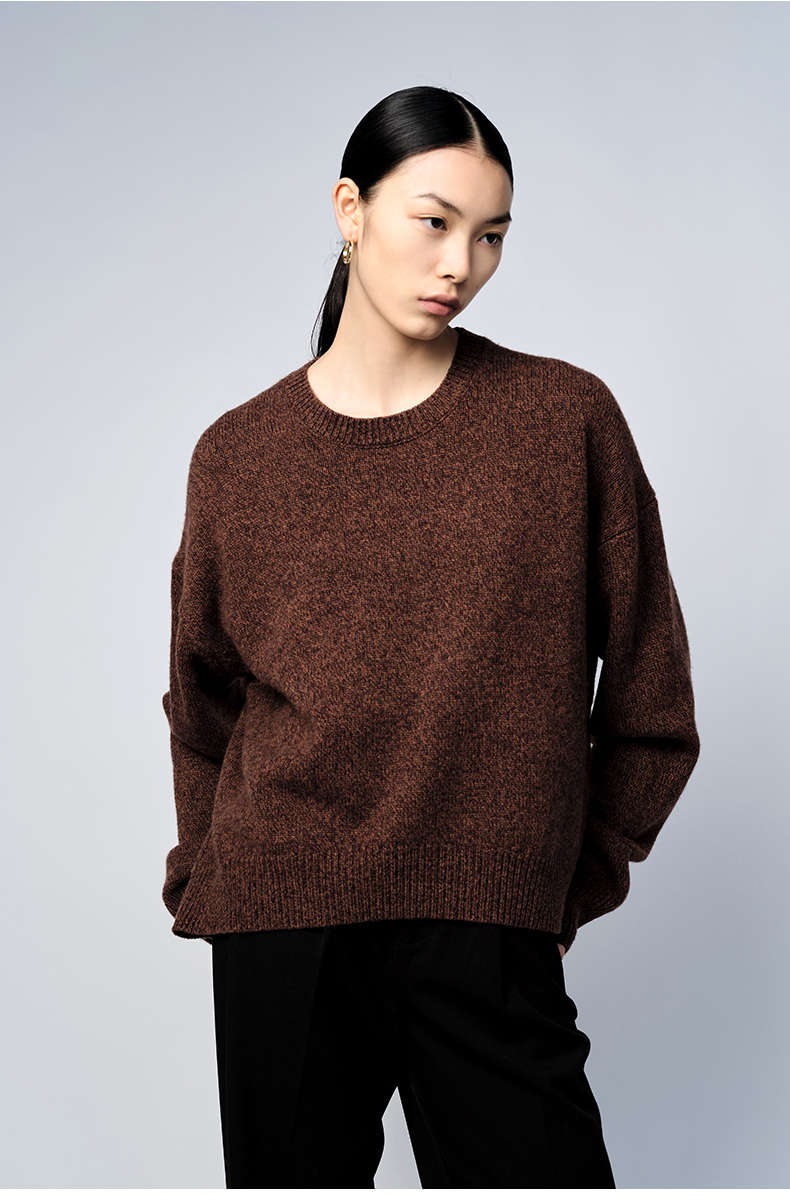 HIDEMI 美利奴羊毛系列经典圆领廓形厚款大毛衣