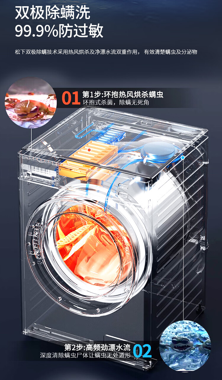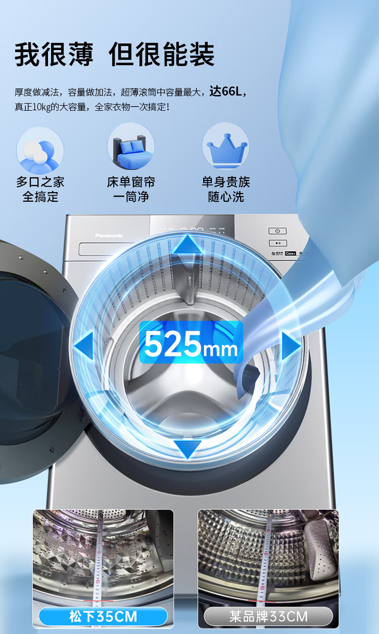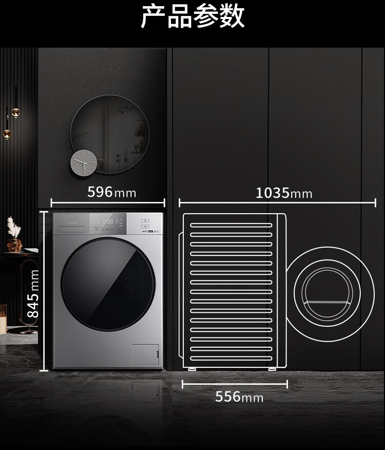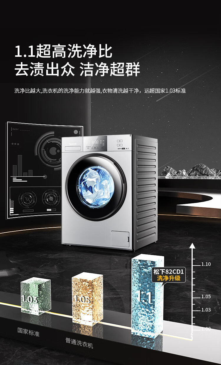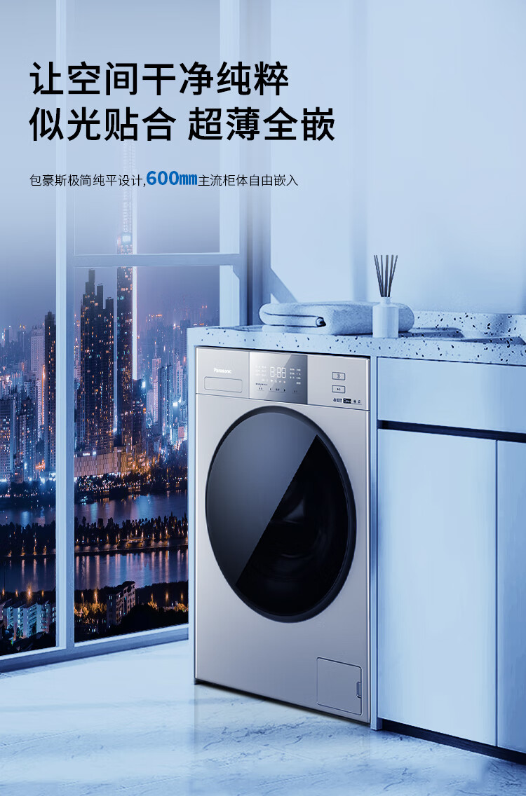 松下(Panasonic)10KG 滚筒洗衣机 洗烘一体 超薄全嵌 超能云泡洗 除屑净烘 低温烘干 镜面触控屏 小灰象XQG100-82CD1