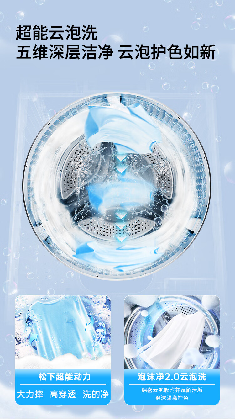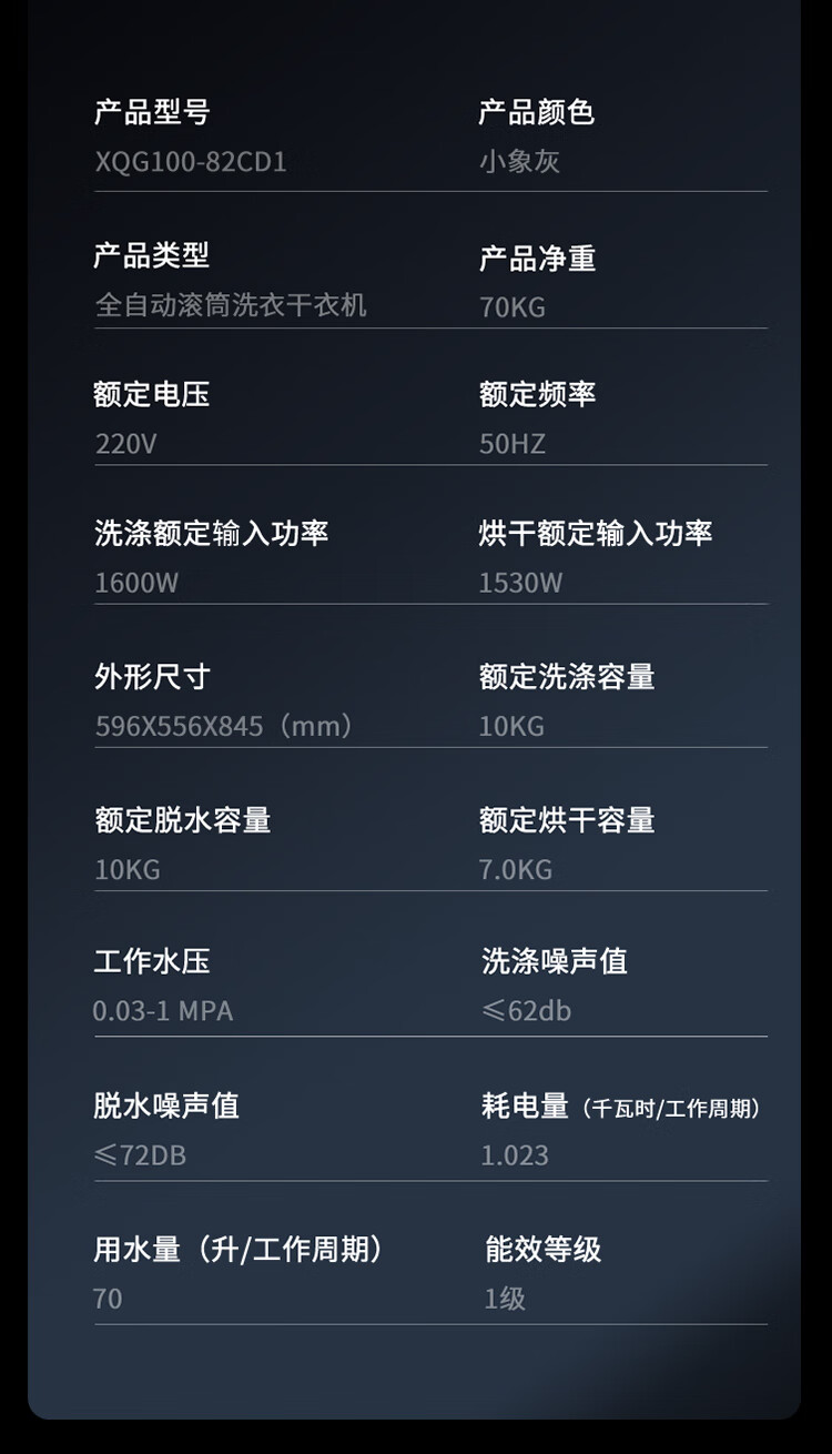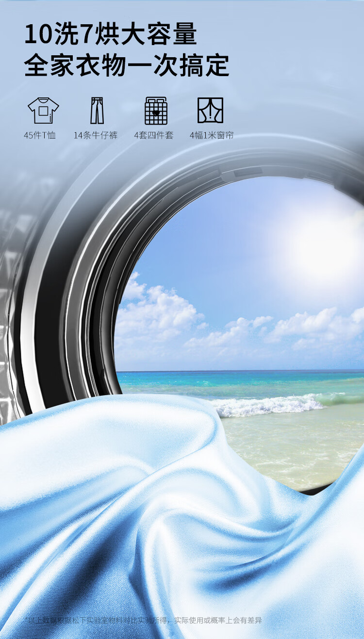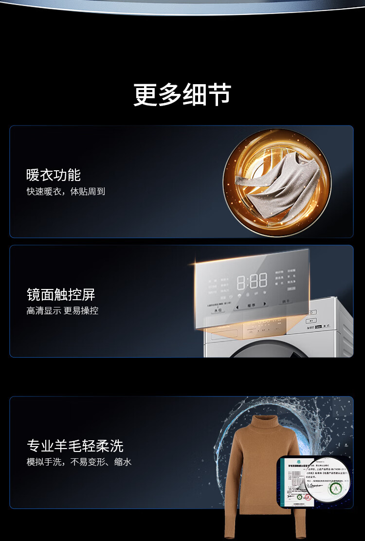 松下(Panasonic)10KG 滚筒洗衣机 洗烘一体 超薄全嵌 超能云泡洗 除屑净烘 低温烘干 镜面触控屏 小灰象XQG100-82CD1