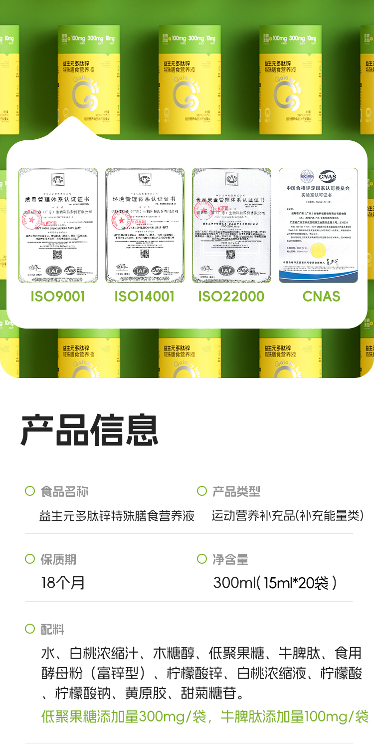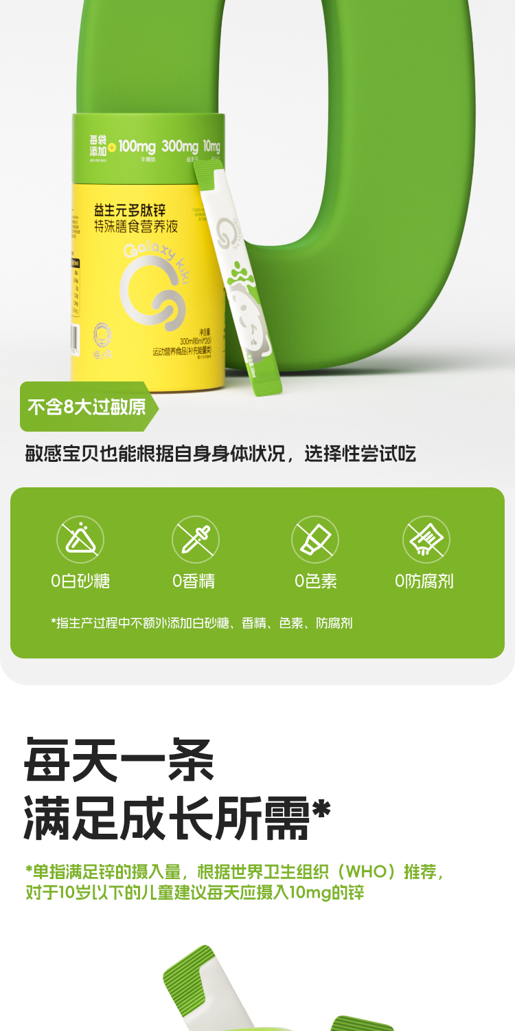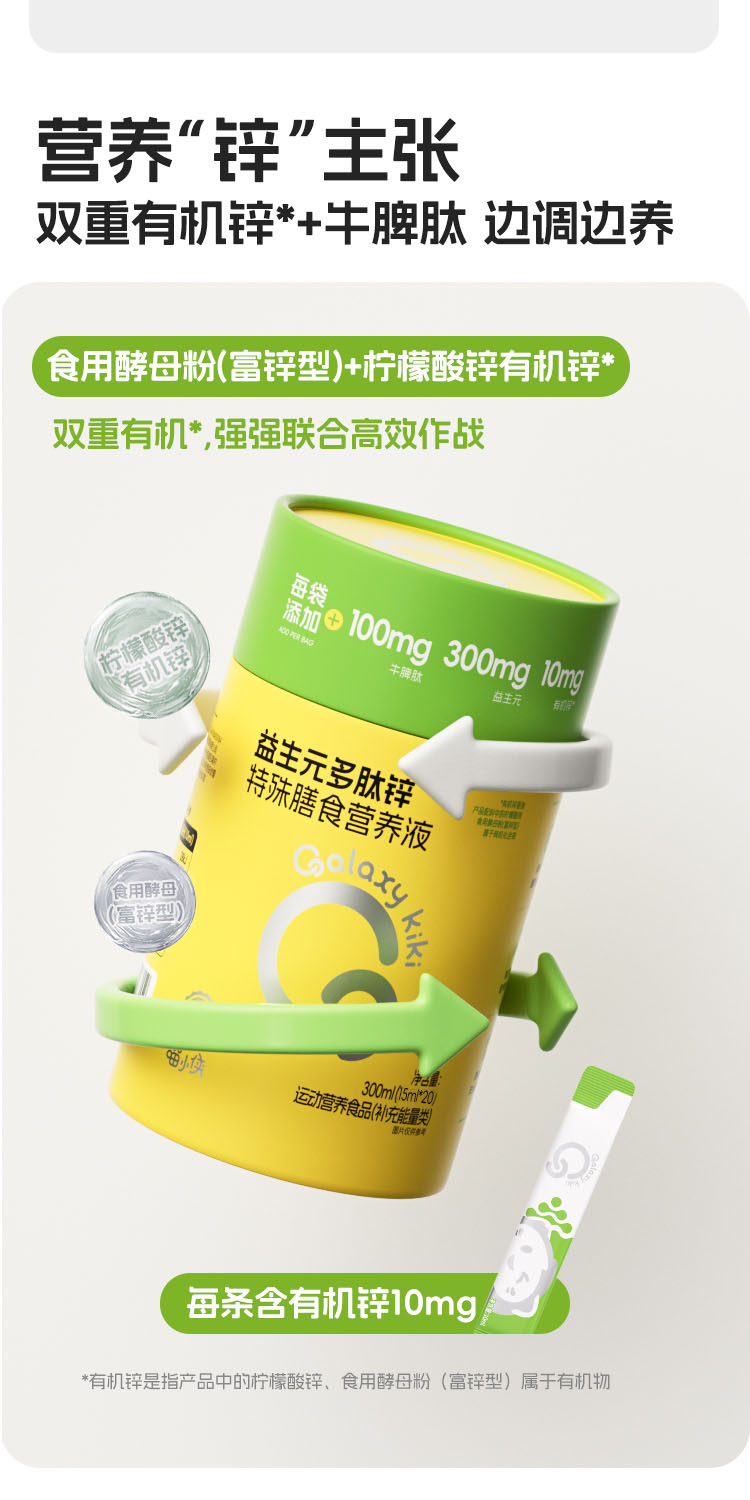 【产品名称】:Galaxy kiki益生元多肽锌特殊膳食营养液300ml
