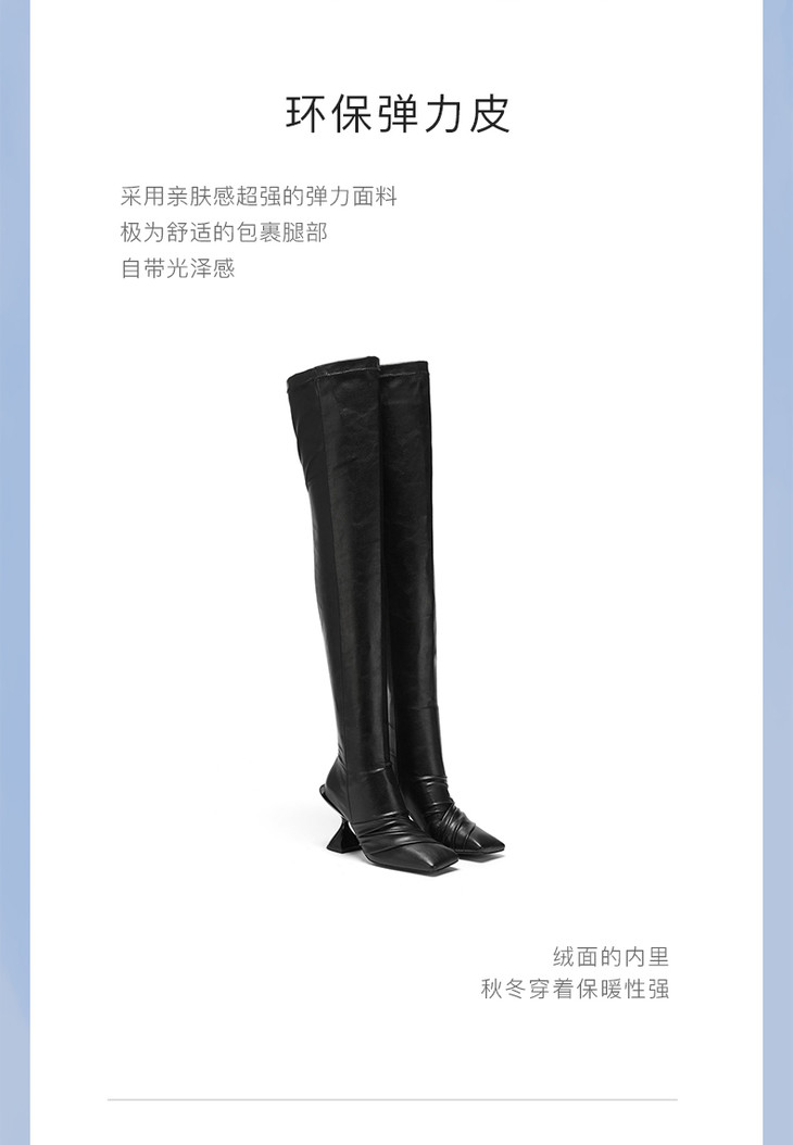 【微瑕疵不退不换】lost in echo x VIVIANO 设计师原创秋冬方头褶皱超高筒弹力靴