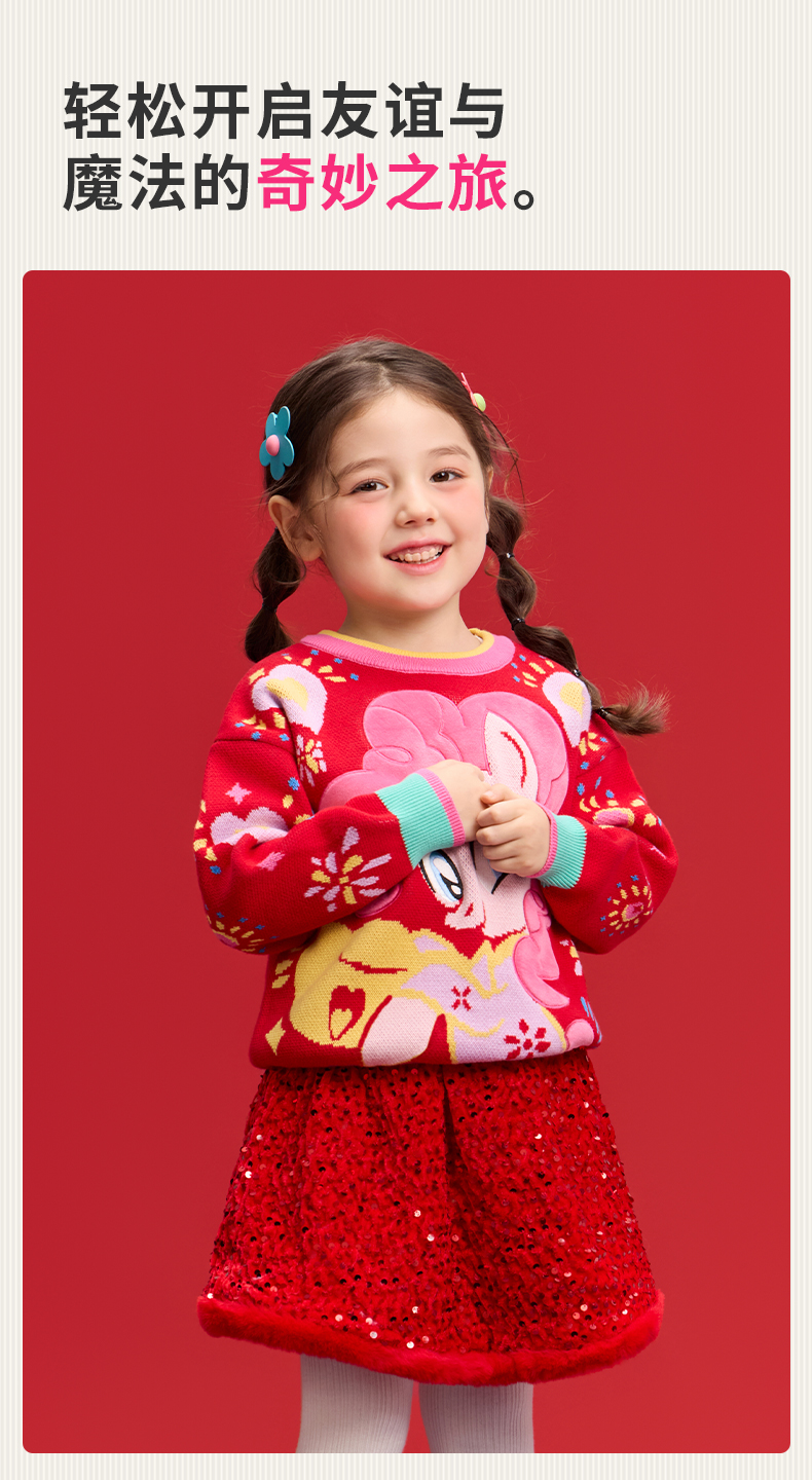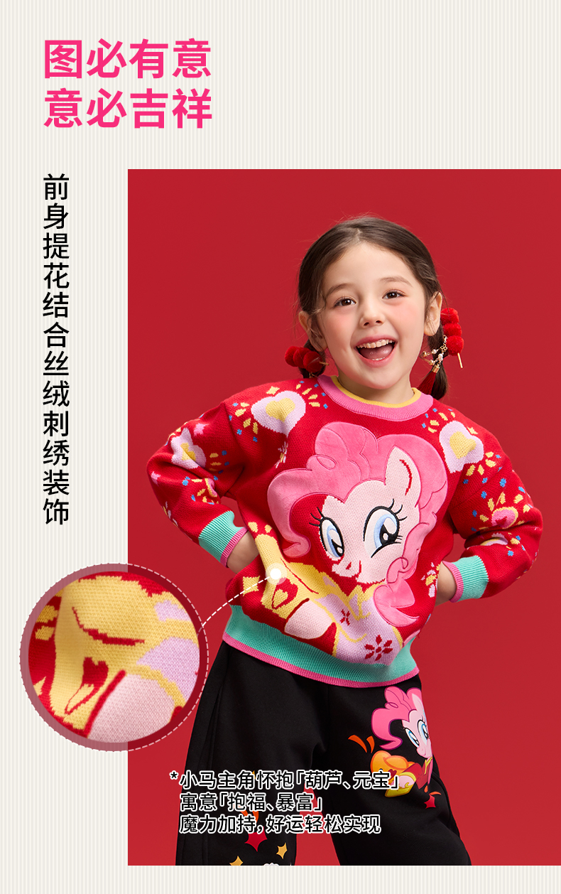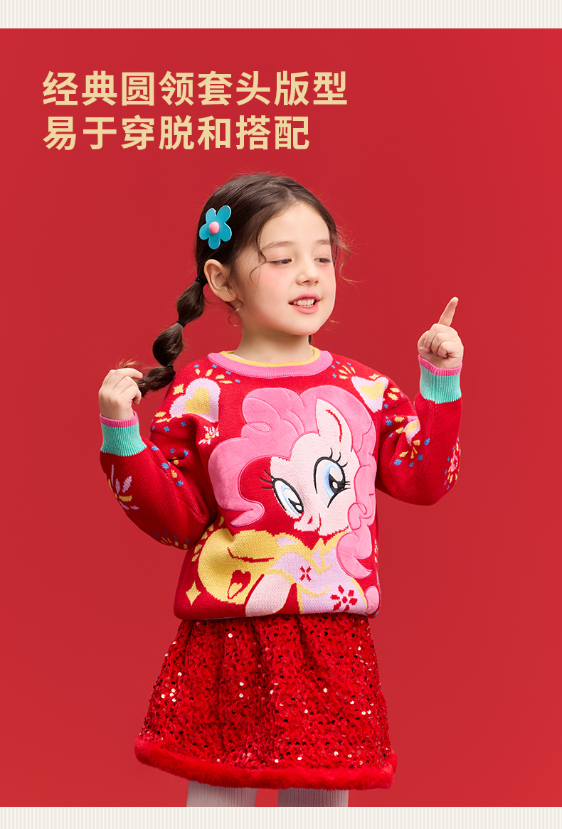 【年衣品牌团】小马宝莉联名年衣童装冬季新品女童中式卡通小马宝莉心花怒放毛衣 1207