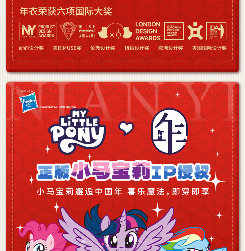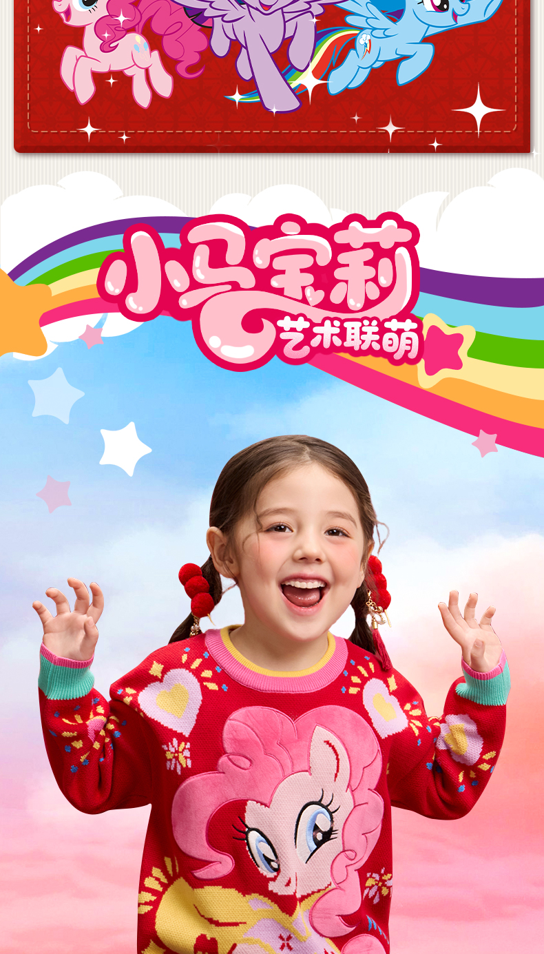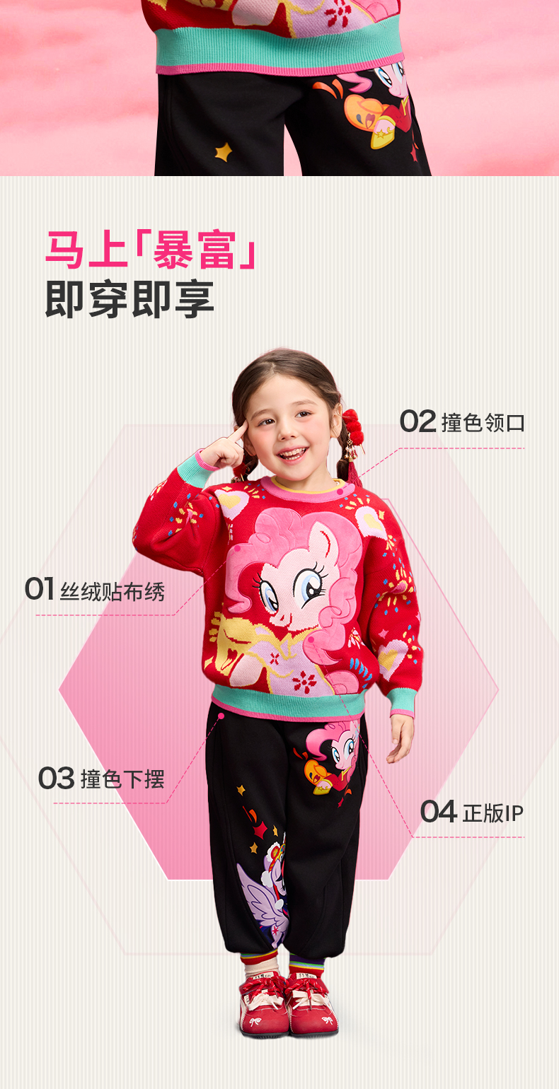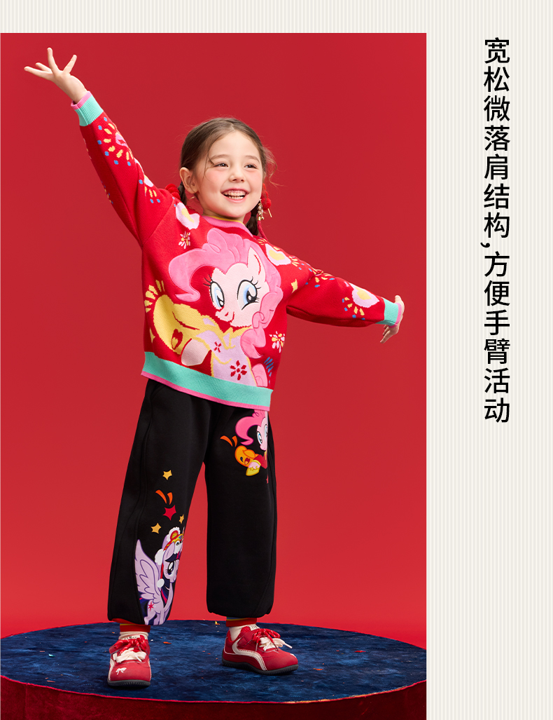 【年衣品牌团】小马宝莉联名年衣童装冬季新品女童中式卡通小马宝莉心花怒放毛衣 1207