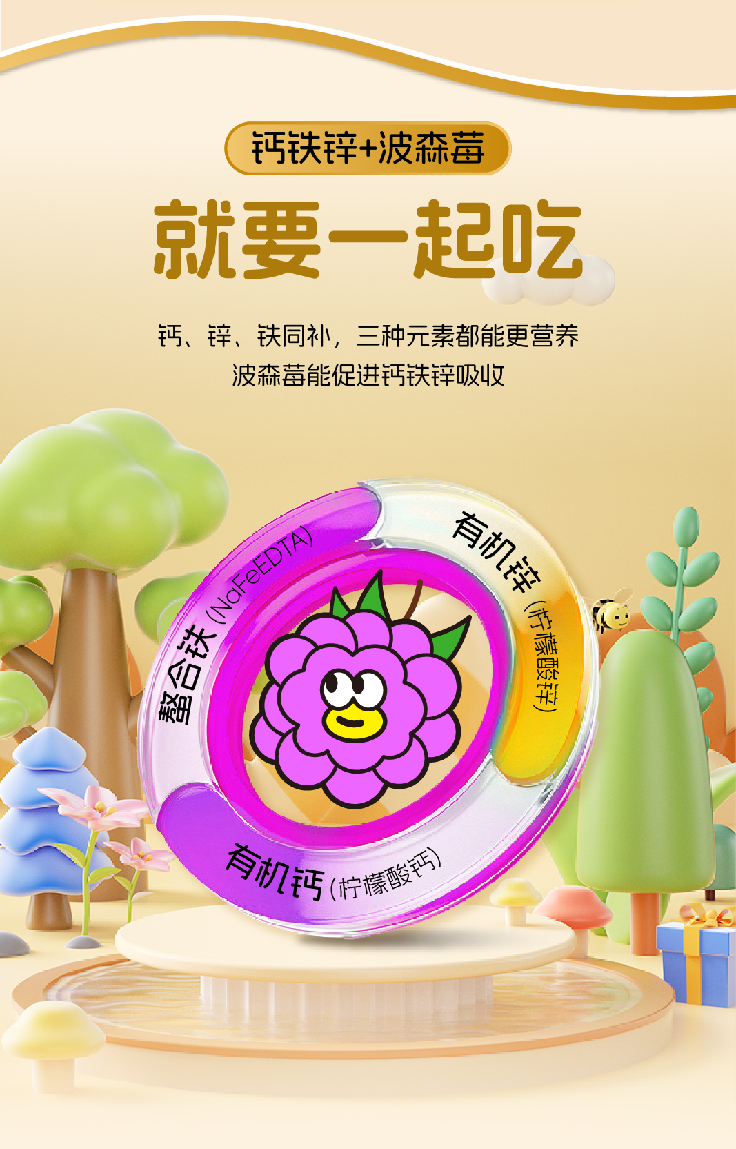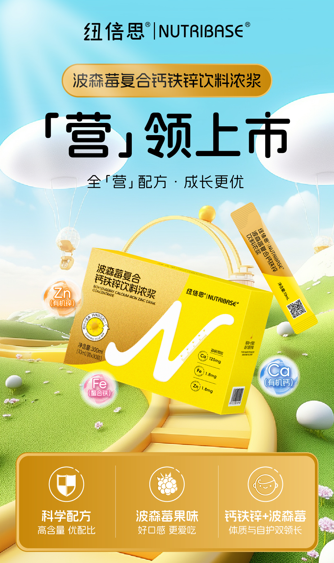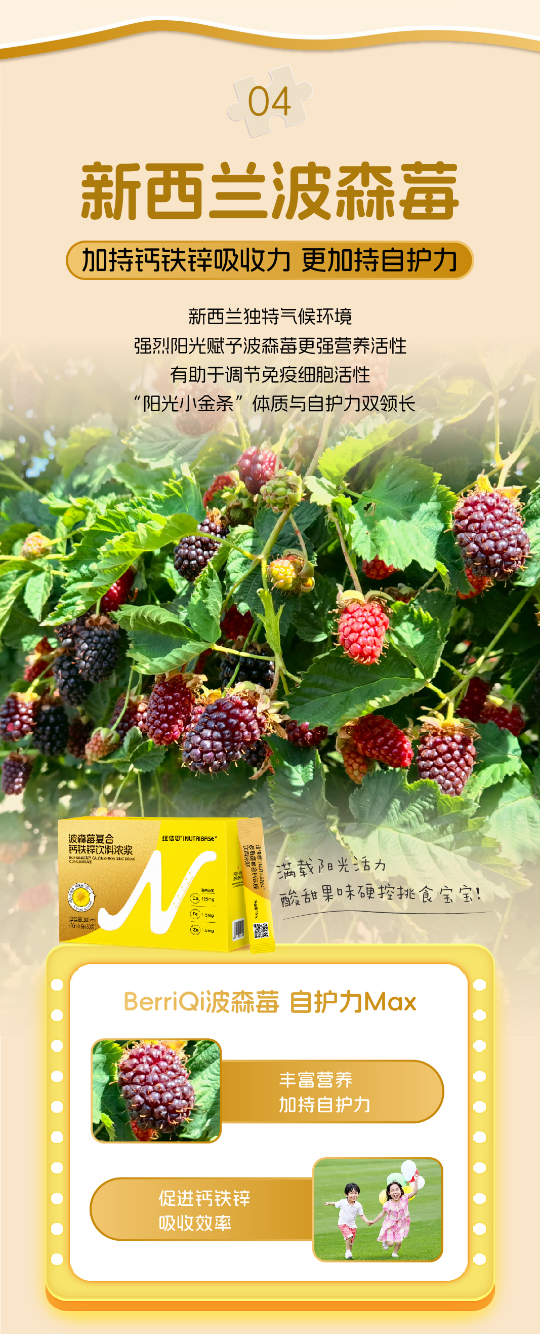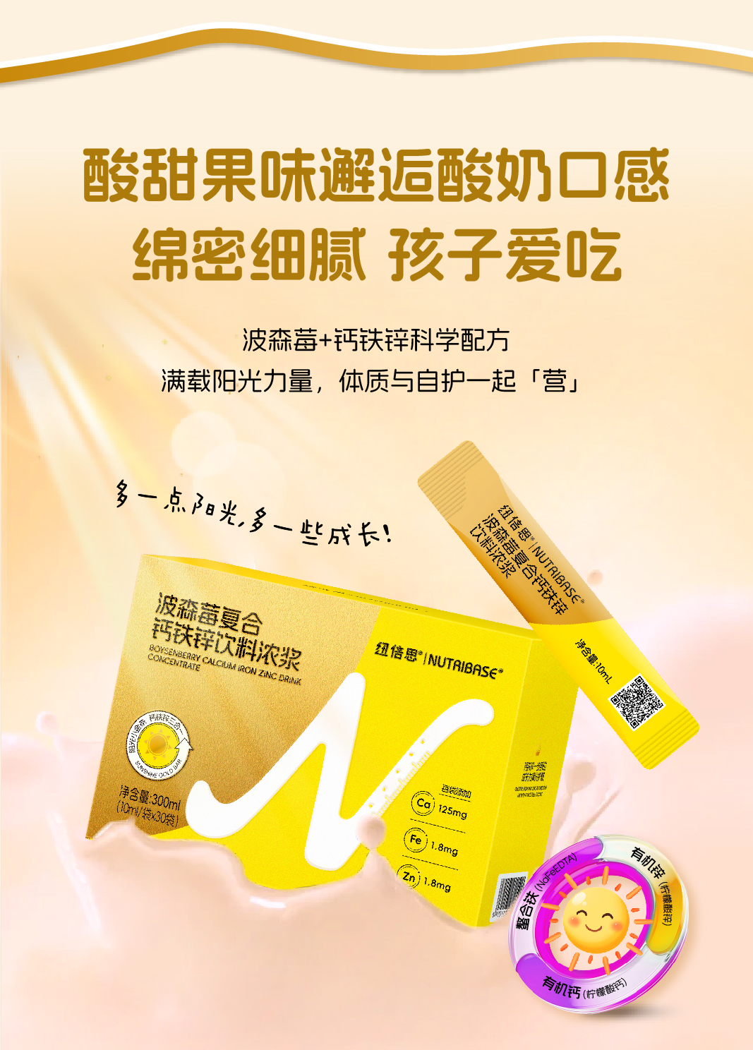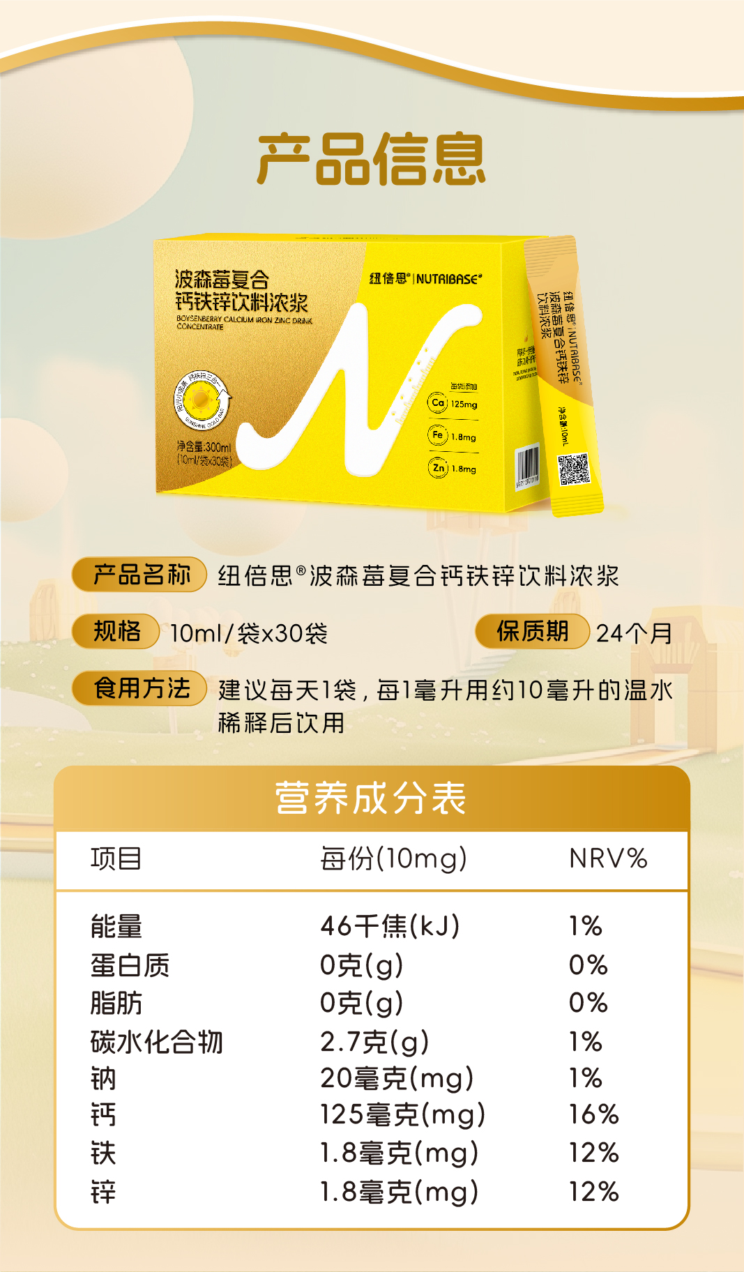 ² 【纽倍思波森莓液体钙铁锌】每条含钙125mg+铁1.8mg+锌1.8mg+800mg波森莓 酸奶果味 10ml*30条/盒 HM02-CRMM-NBS