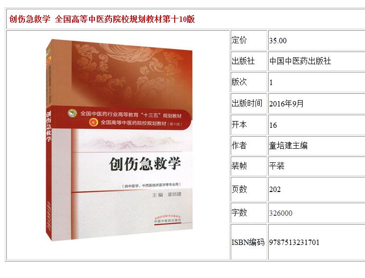 创伤急救学 第十10版 全国高等中医药院校规划教材 十三五本科教材 童培建主编 中国中医药出版社供中医学中西医临床医学等专业用