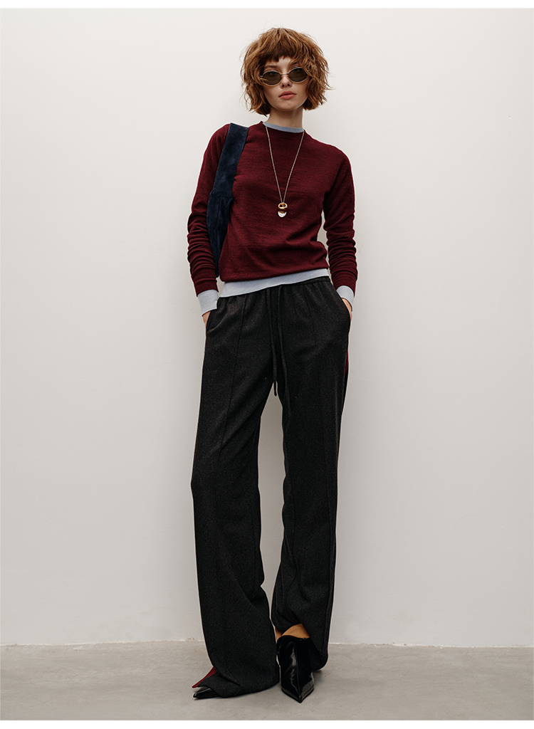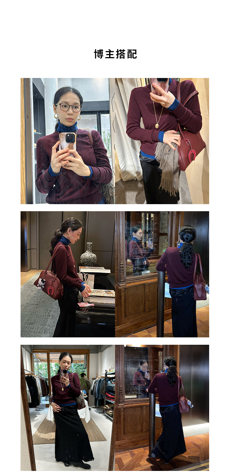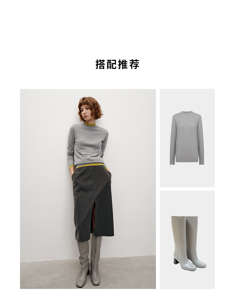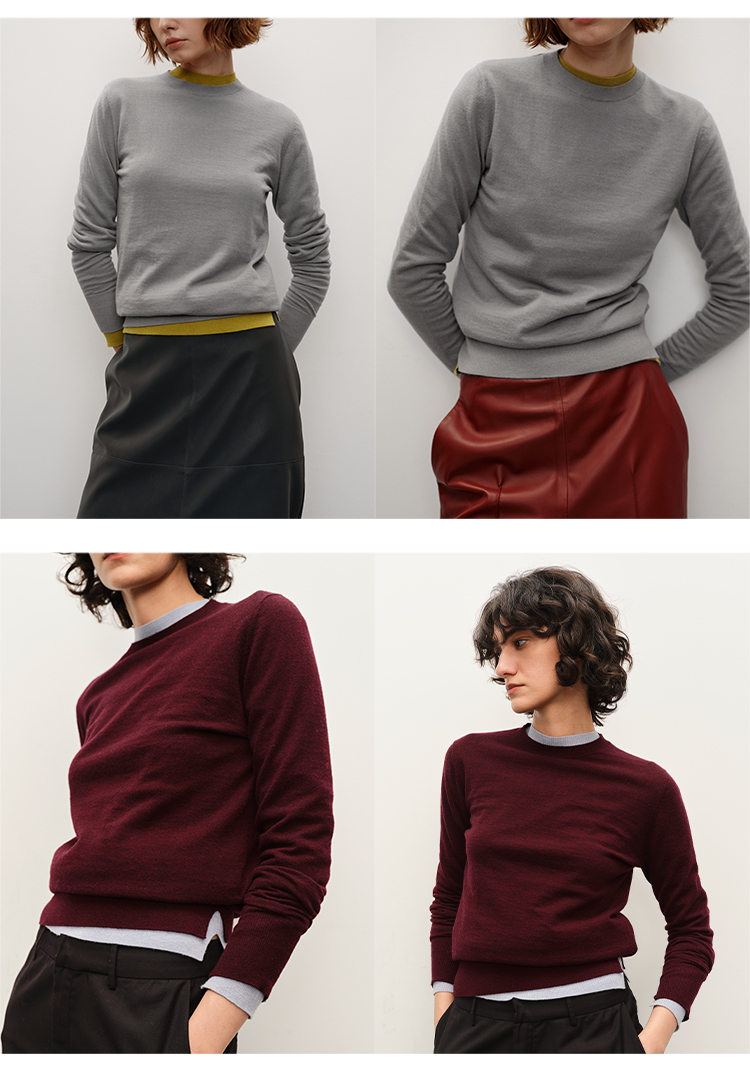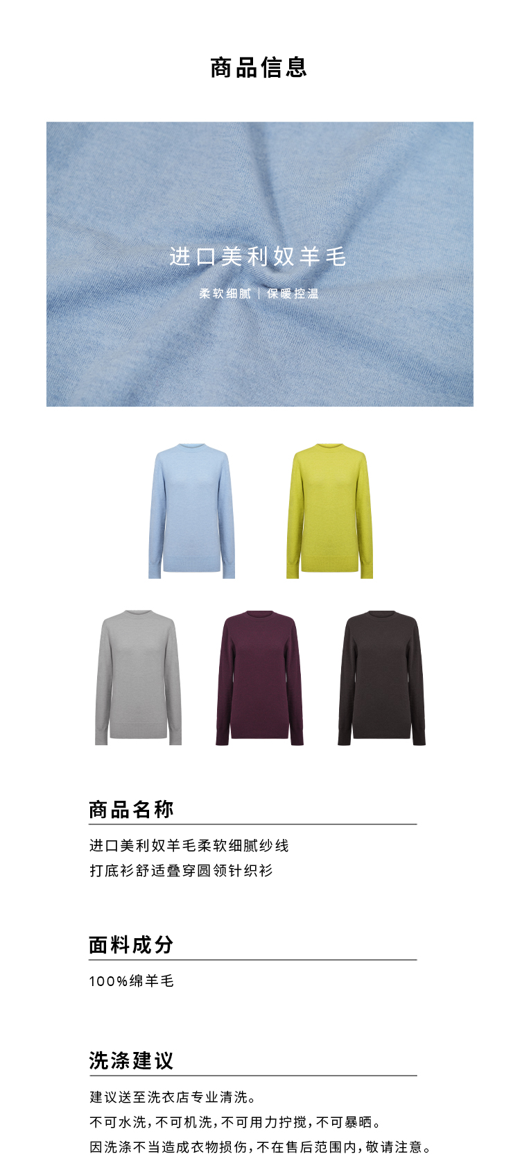 HIDEMI 进口美利奴羊毛柔软细腻纱线打底衫舒适叠穿圆领针织衫