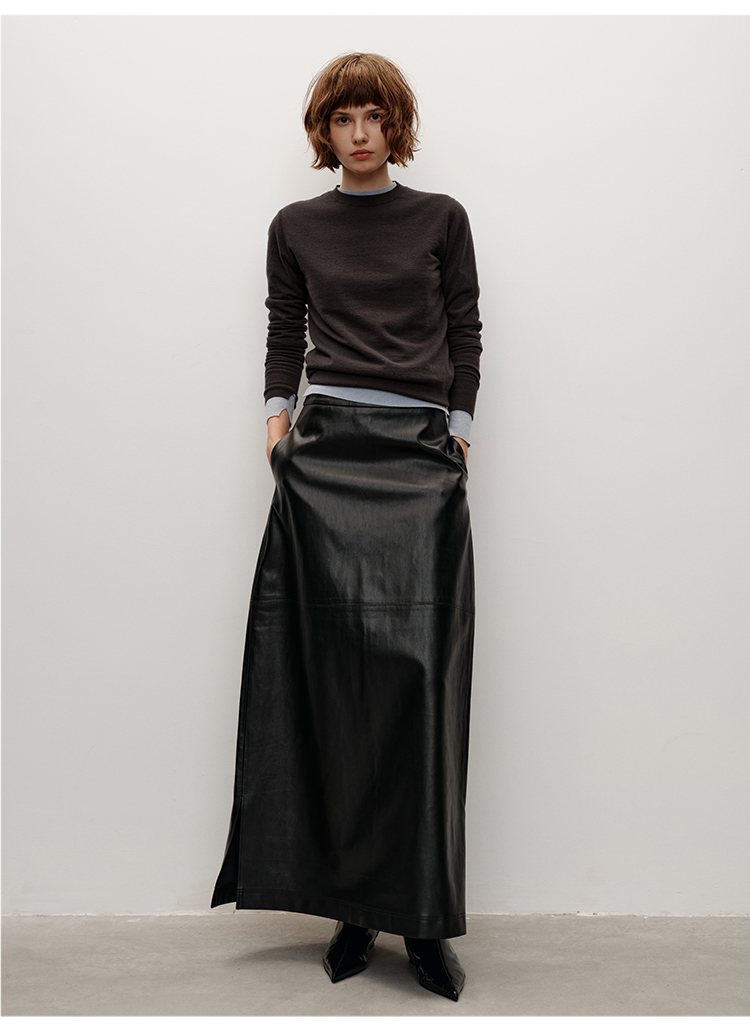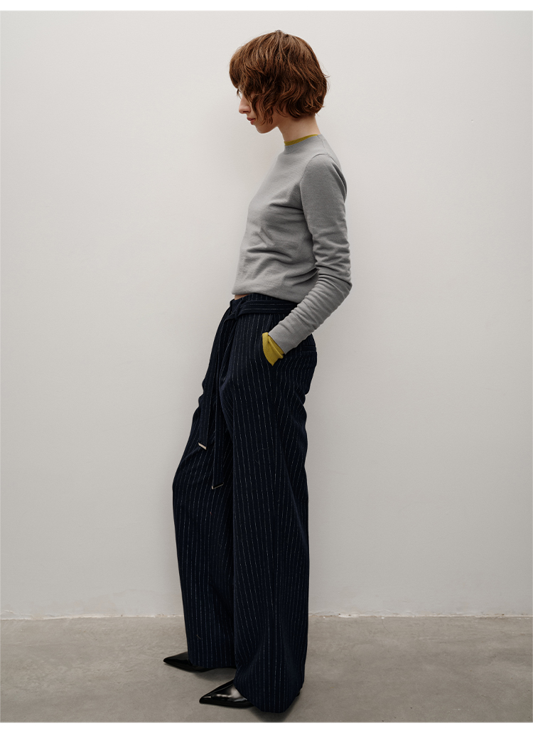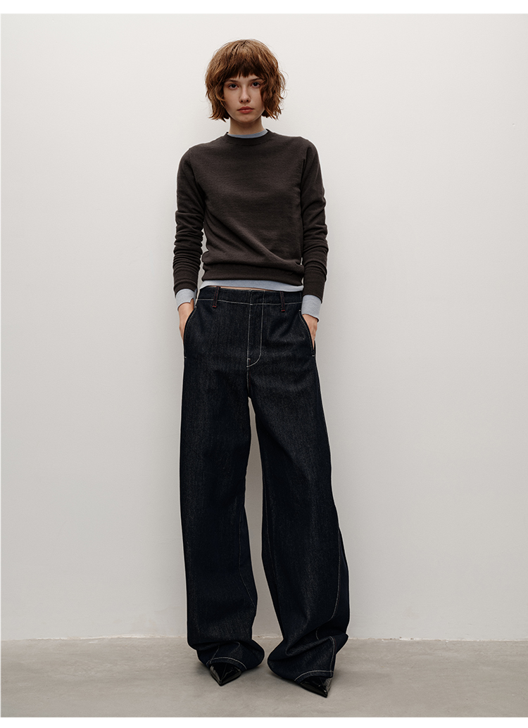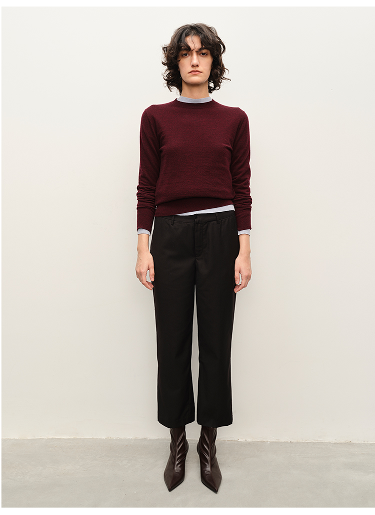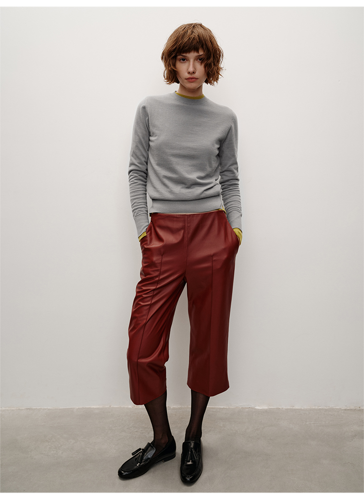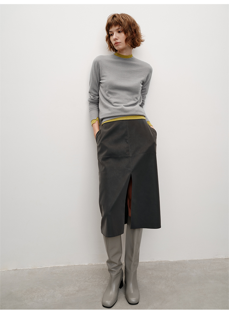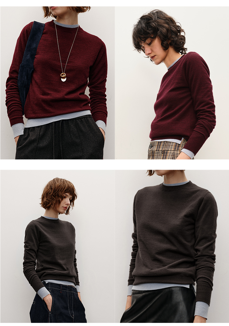 HIDEMI 进口美利奴羊毛柔软细腻纱线打底衫舒适叠穿圆领针织衫