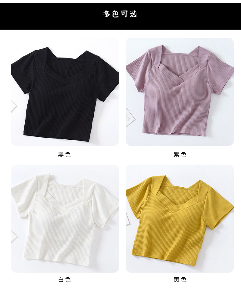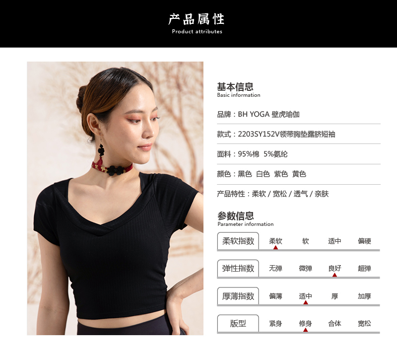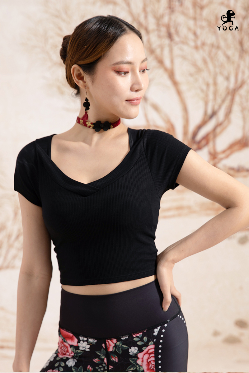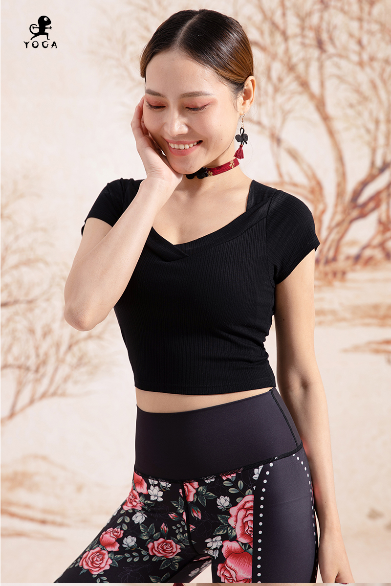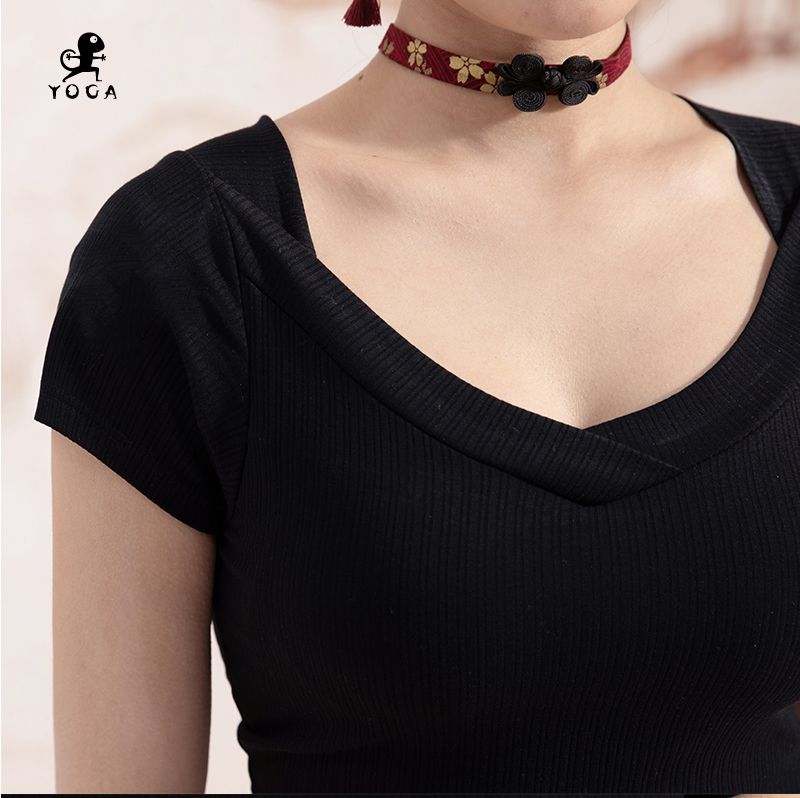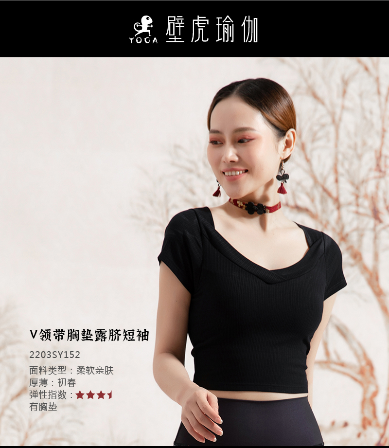 壁虎瑜伽【2203SY152】V领带胸垫露脐短袖(有胸垫)【七十二小时发货】