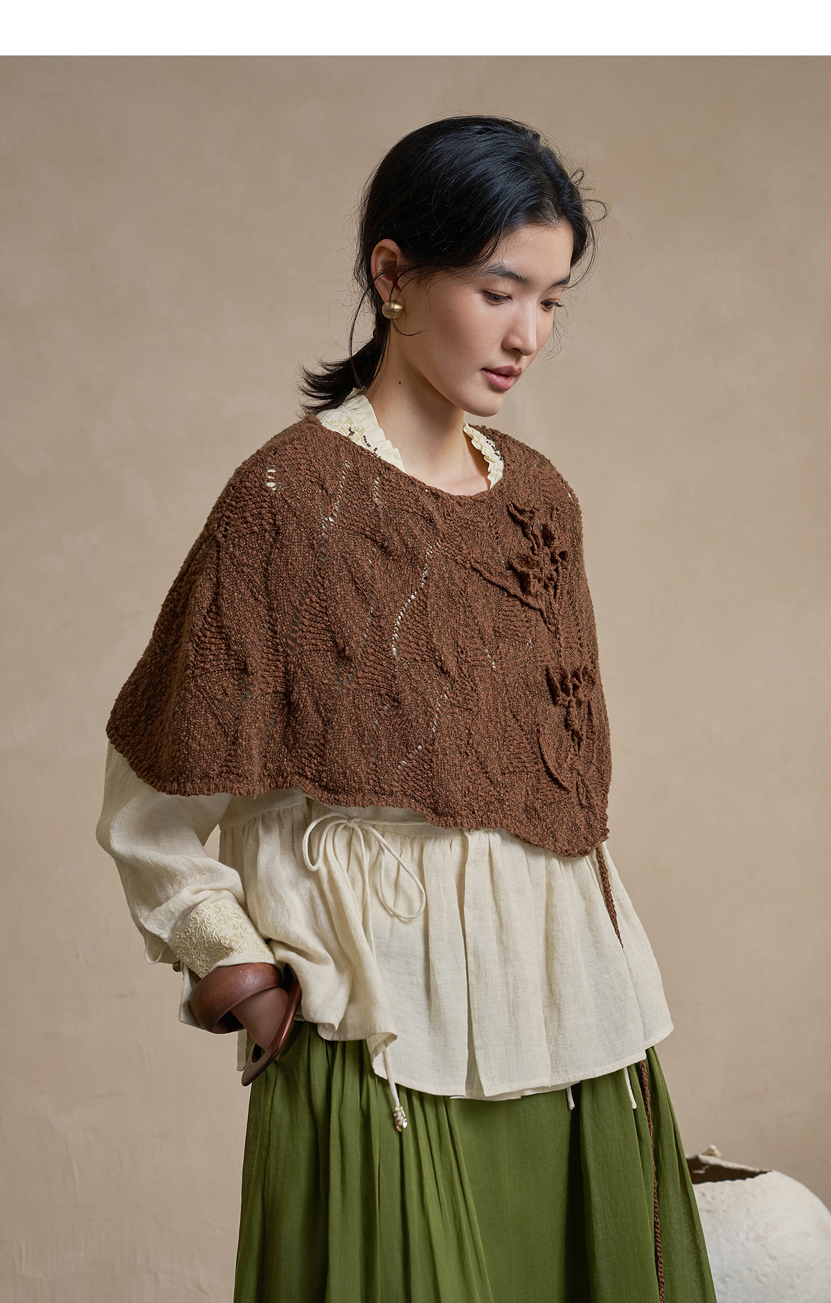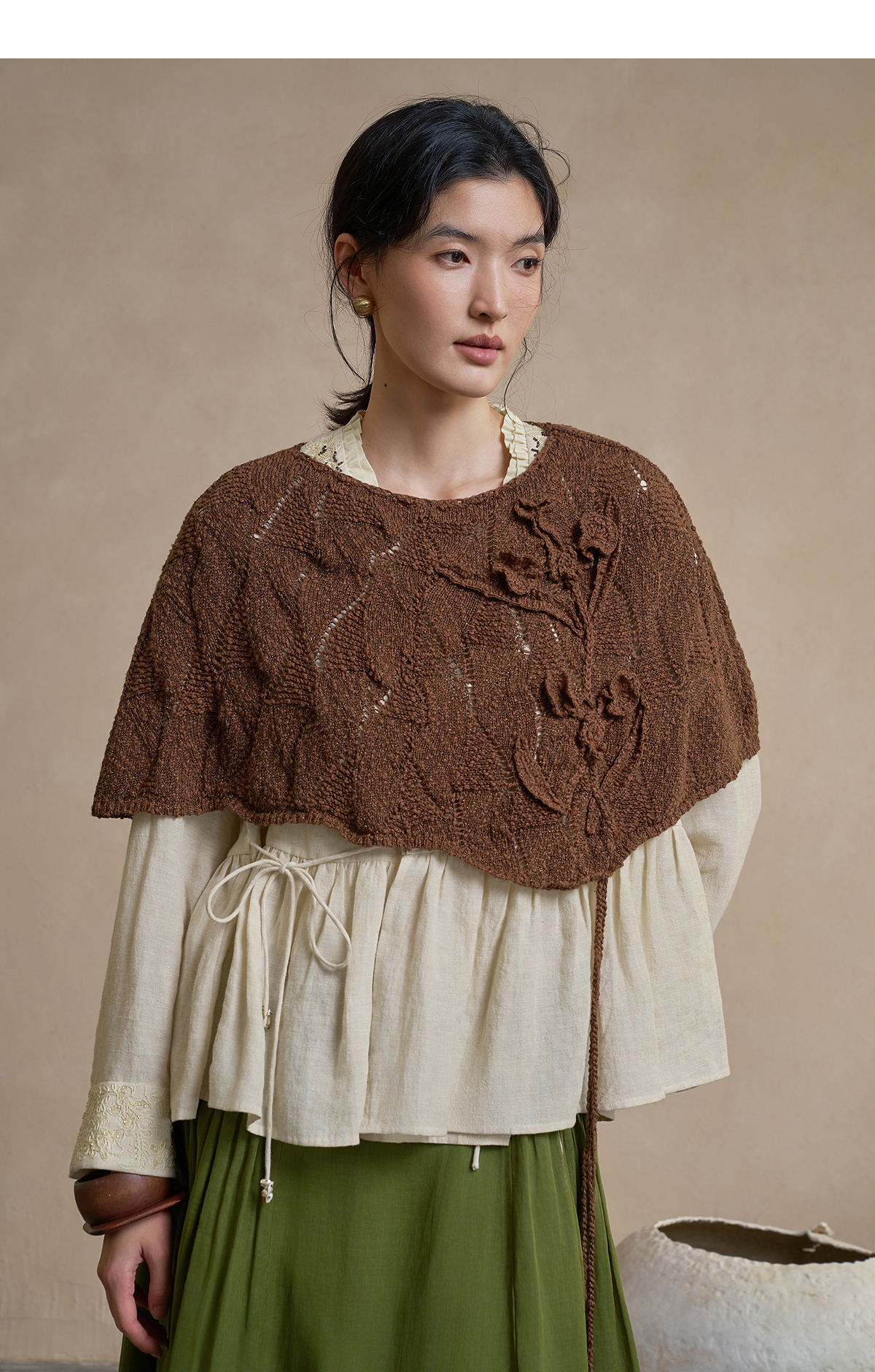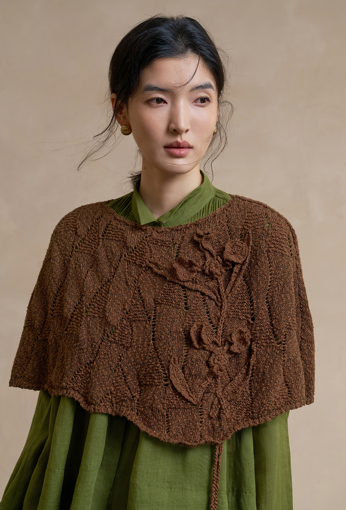 【林栖设计小店】手工钩花|金纱棉毛织披肩镂空立体感2026早春新款围巾女2961149