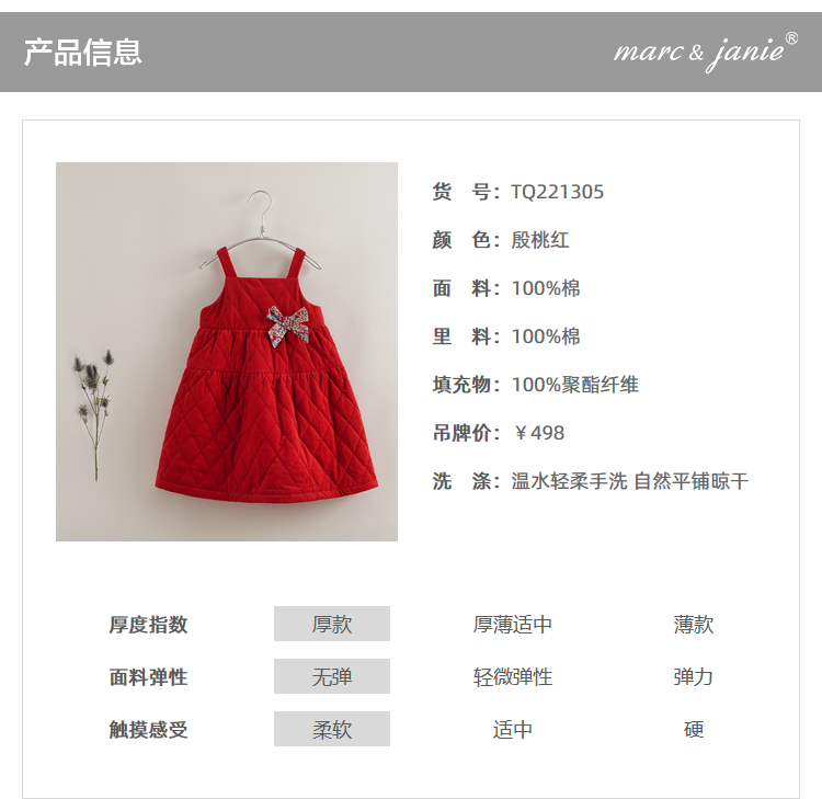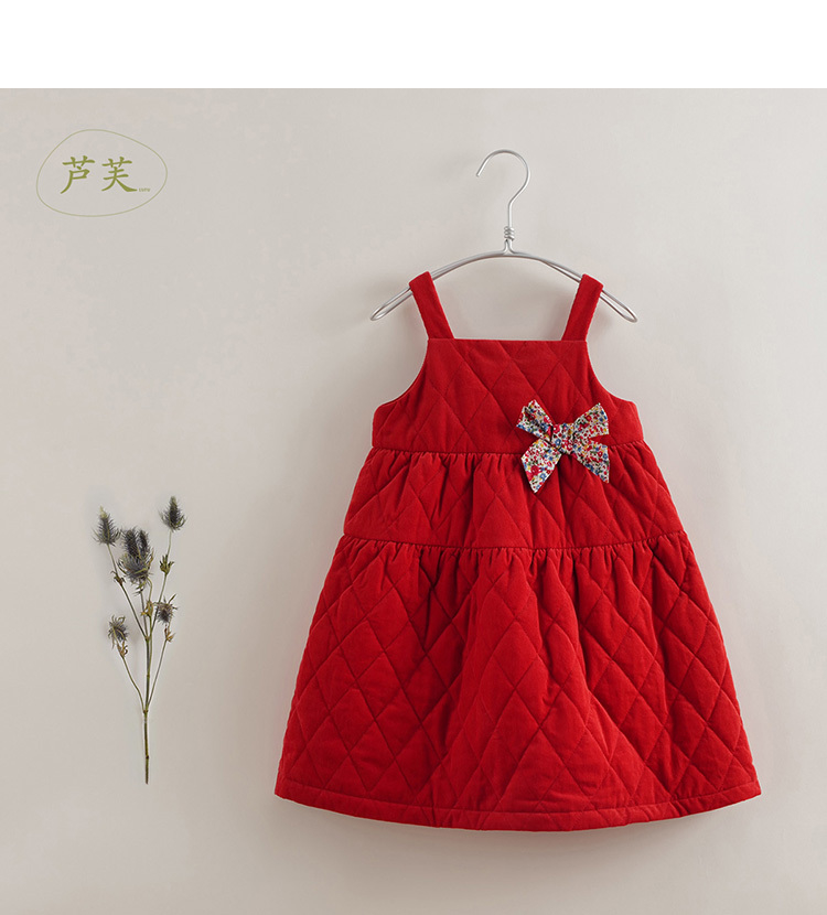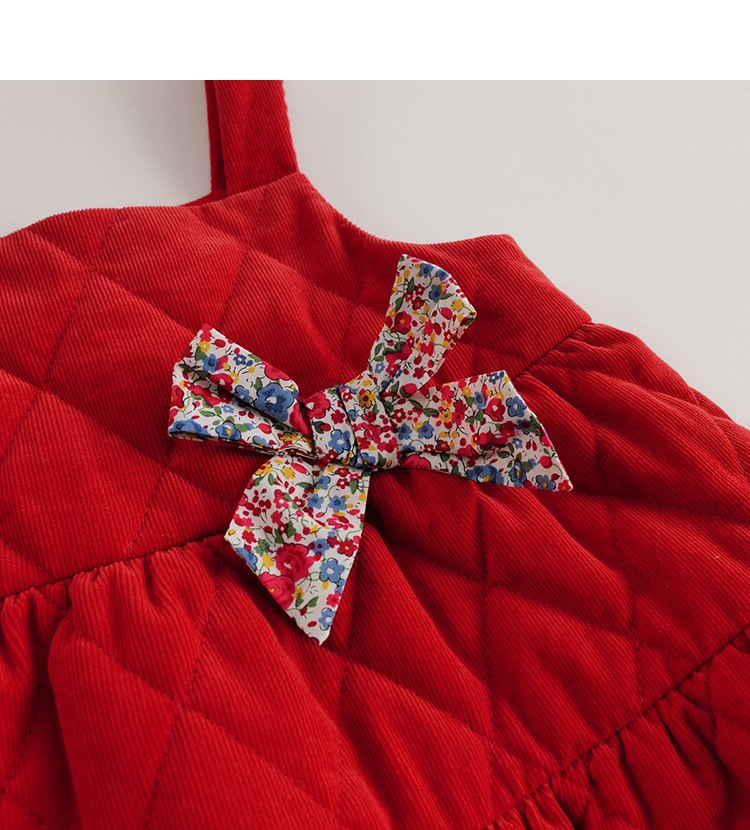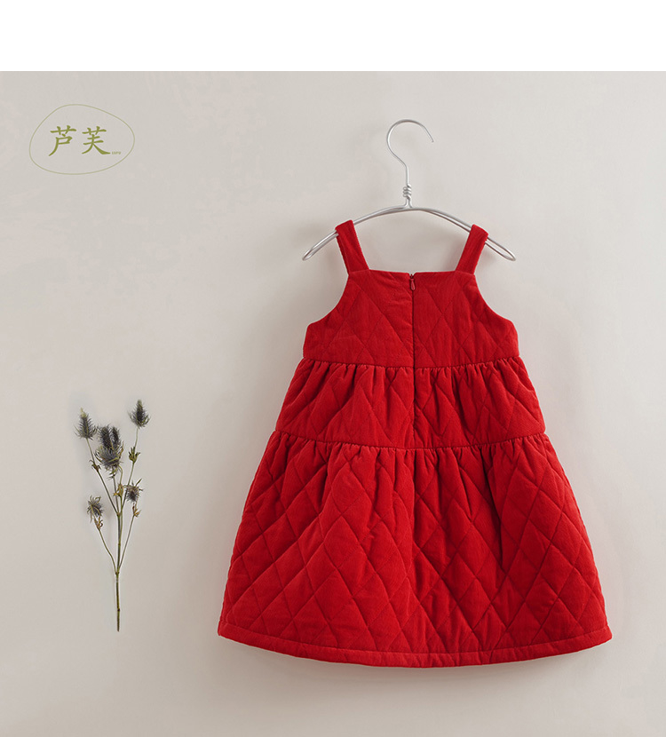 【马克珍妮 芦芙】秋冬新款 女童灯芯绒菱格夹棉背带裙221305