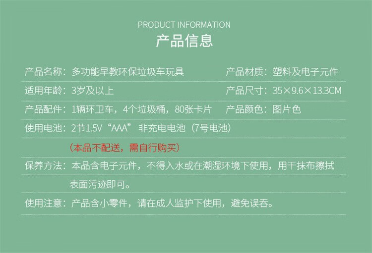 婴侍卫(BBG) 过家家玩具 多功能早教环保垃圾车玩具