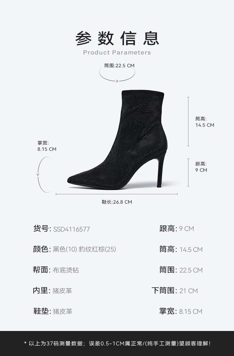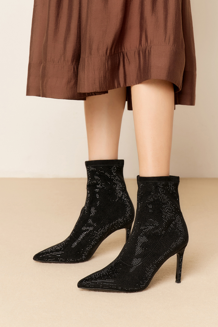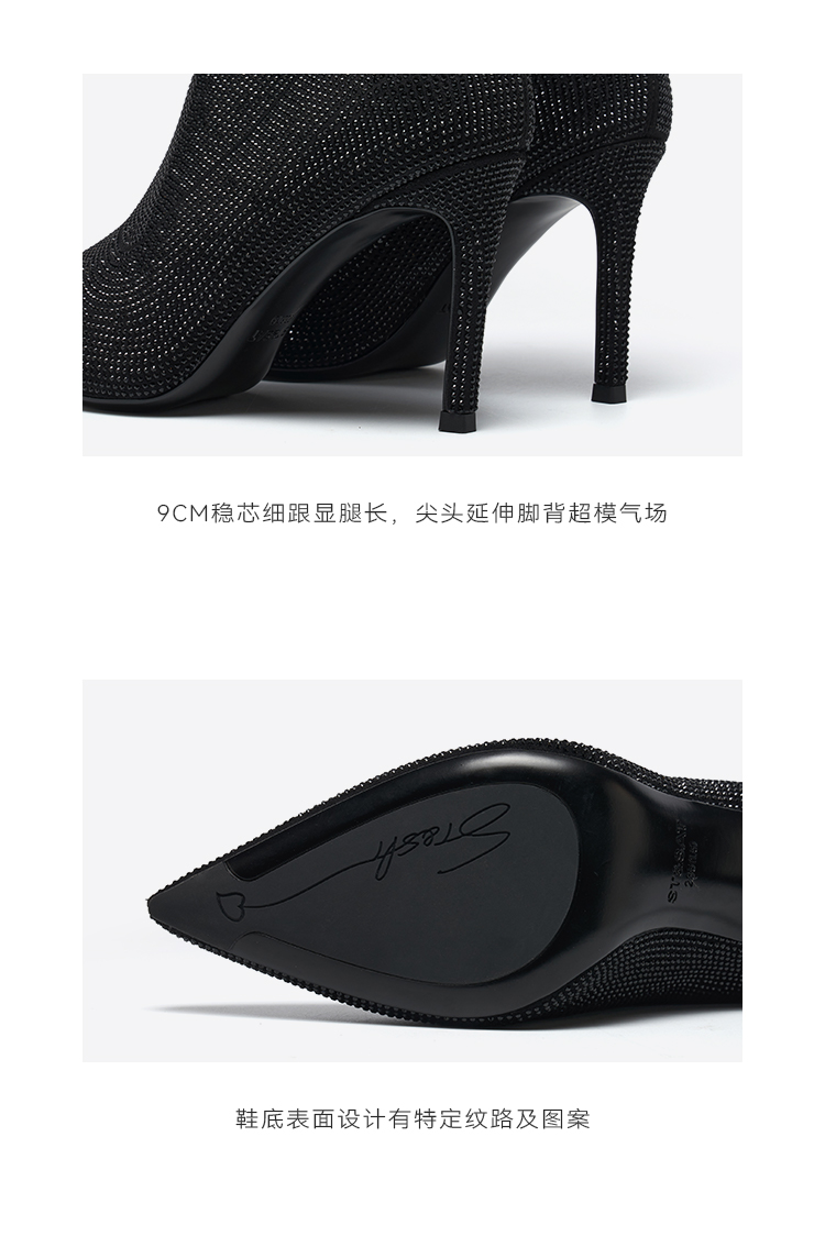 星期六摩登烫钻尖头气质时装靴SSD4116577